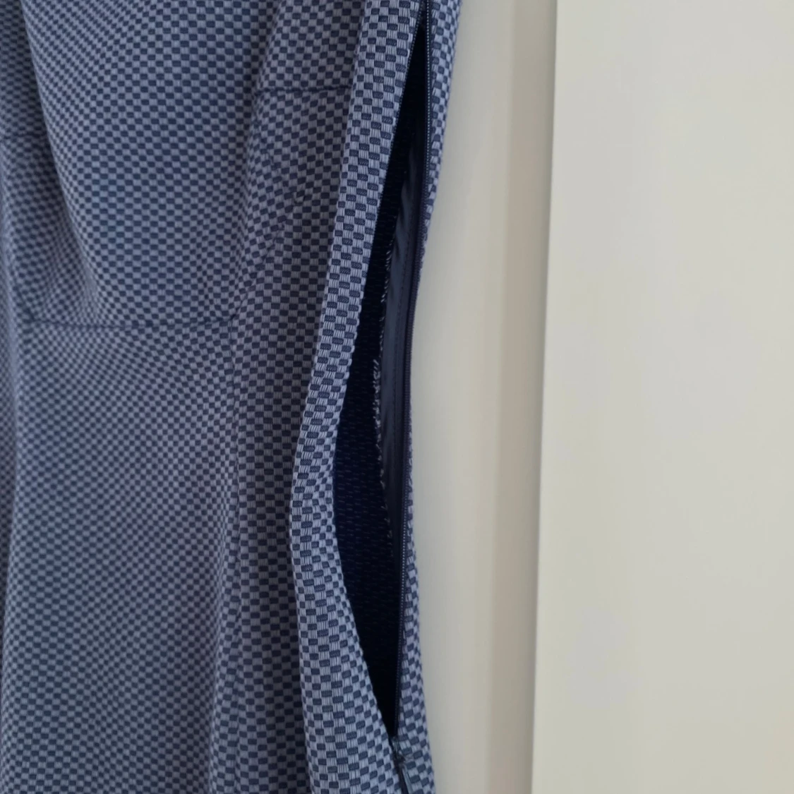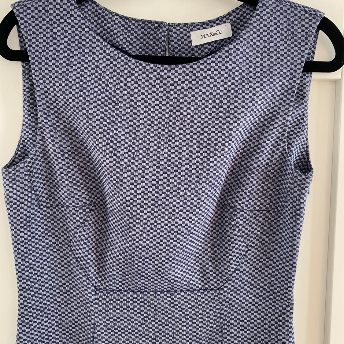 Snygg ärmlös klänning från MAX&Co i blått och vitt med rutigt mönster. Modellen är figurnära med rund halsringning och dragkedja i sidan. Perfekt för dig som gillar stilrena och klassiska plagg med en modern twist. Mått Över bröstet: ca 44 cm Över höften: ca 46 cm Längd från axeln och ner: ca 92 cm 69% polyester, 29% viskos och 2% elastan Kommer från ett djur och rökfritt hem.