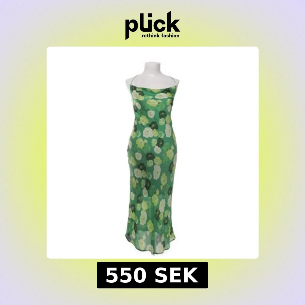 Snygg grön långklänning med blommigt mönster i olika nyanser av grönt och vitt. Klänningen har smala axelband och en elegant snörning i ryggen som ger en fin detalj. Perfekt för sommarens alla tillfällen! Använd ca.5 gånger