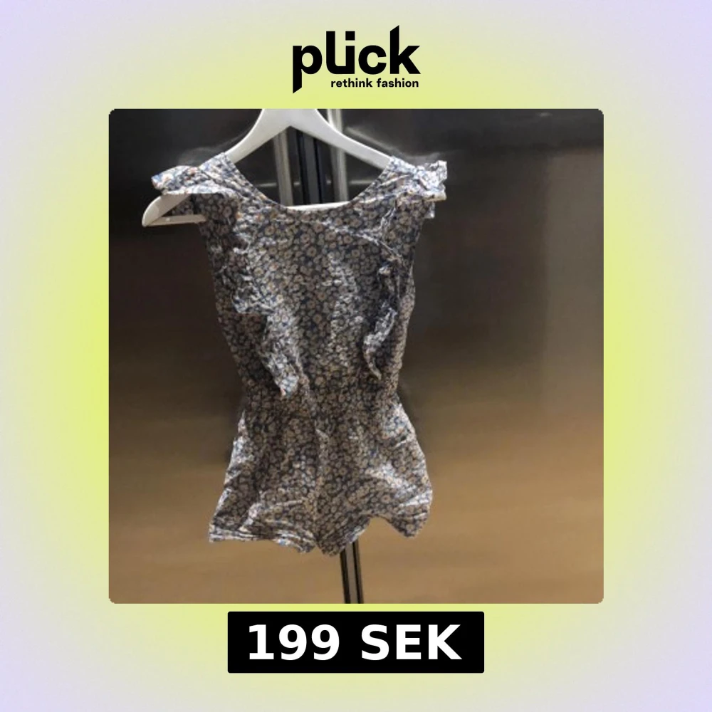 Charmig ärmlös klänning med shorts imed ett blommigt mönster i blått och vitt. Klänningen har volangdetaljer vid axlarna och en smickrande passform. Perfekt för varma sommardagar.