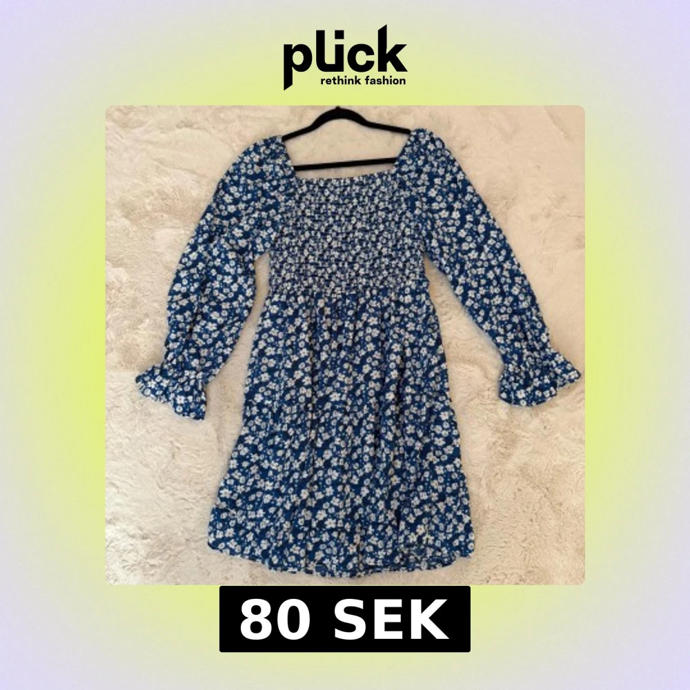 Blå blommig klänning med långärmad puffärm