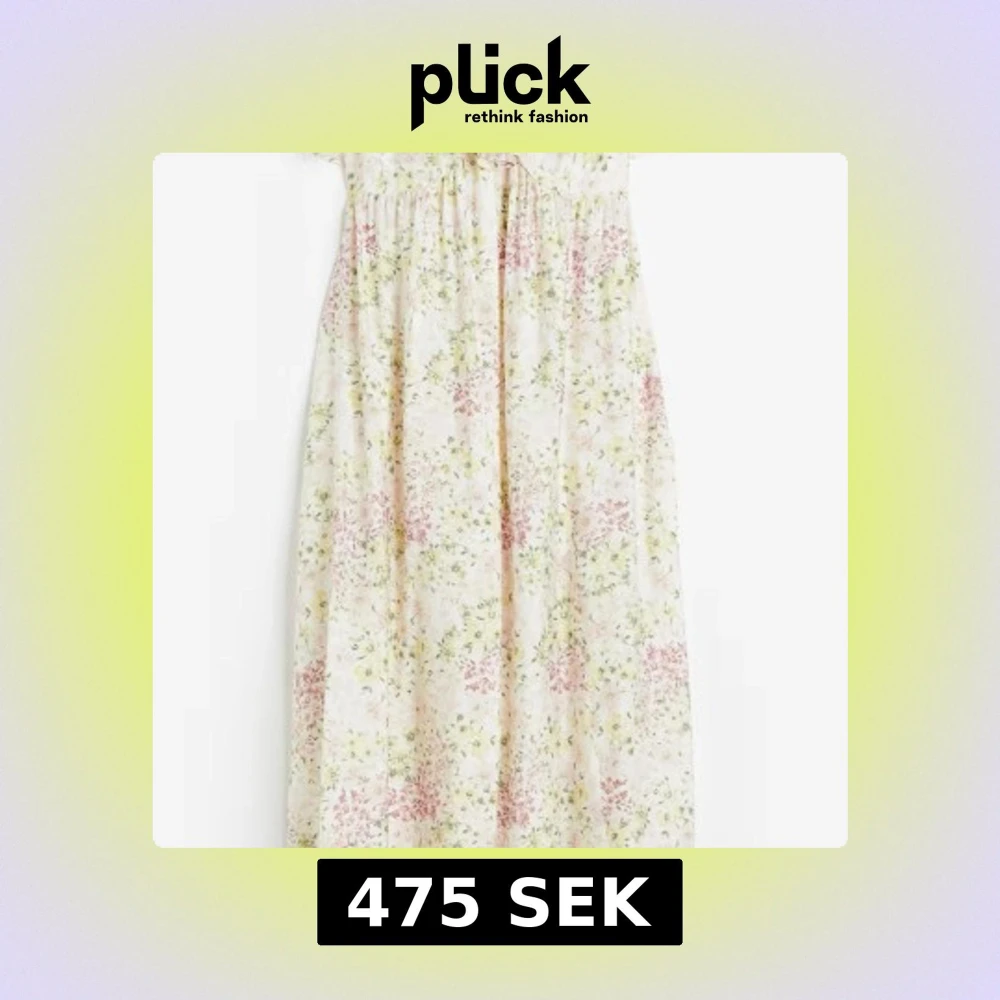Långklänning med blommigt mönster i ljusa toner. Klänningen har smala axelband och volangdetaljer upptill. Använd fåtal gånger kommer från HM slutsåld