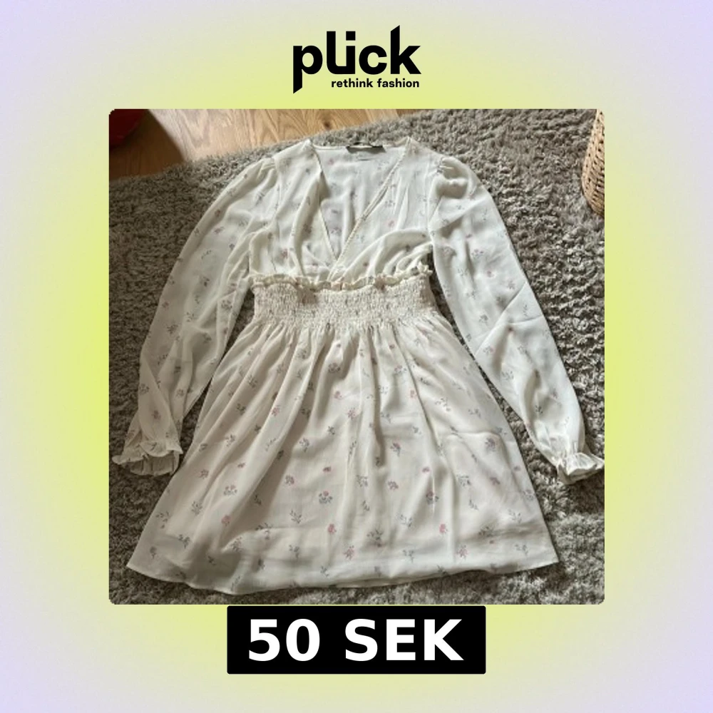 Söt blommig klänning från 157 i en ljus färg med små rosa och blå blommor. Klänningen har långa ärmar med volangdetaljer vid ärmsluten och en smockad midja för en fin passform. Perfekt för vår och sommar!