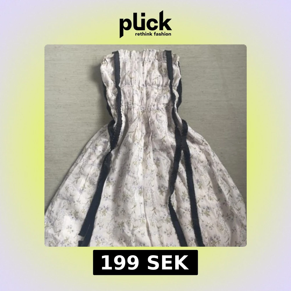Charmig blommig klänning från Brock Collection x H&M med smockdetaljer och svarta band. Perfekt för en romantisk look med sin ljusa färg och subtila blommönster.