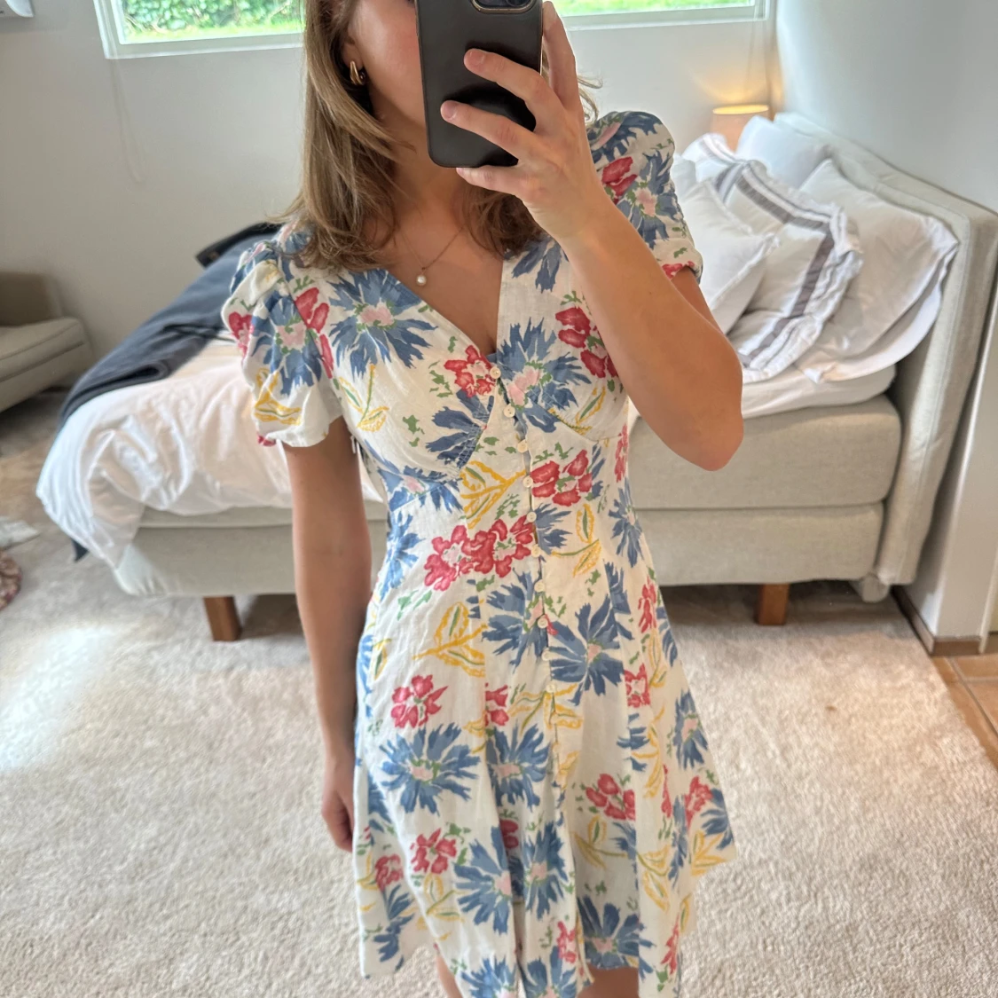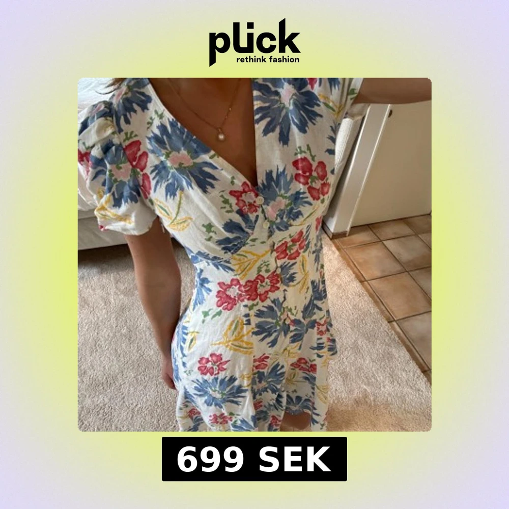 Säljer denna superfina klänningen från Ralph Lauren! Sen sitter superfint och har ett sött fall! Passformen är superfin och den passar perfekt till sommaren!💛storlek us 4