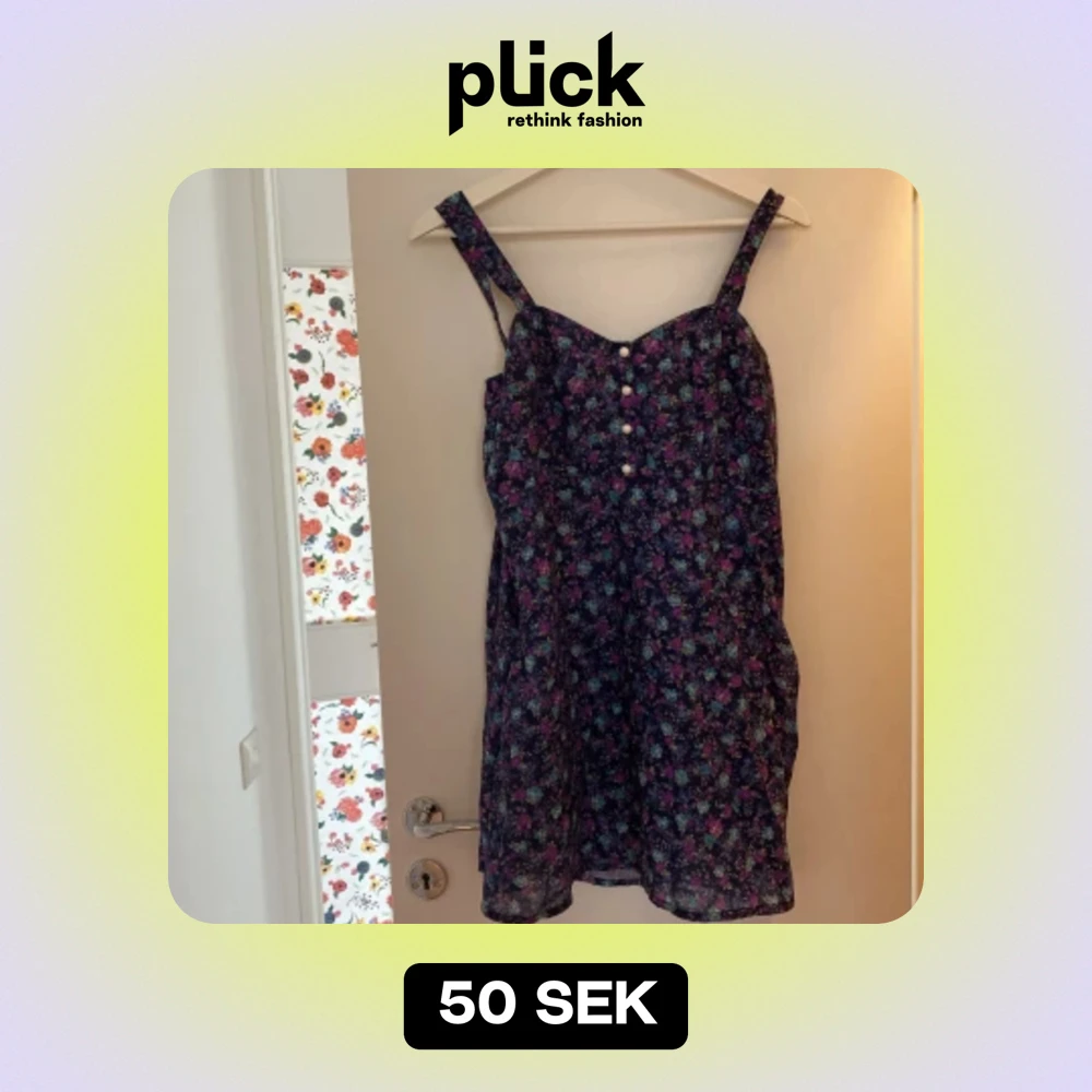 Fin blommig klänning i färgerna blå och lila. Stl s