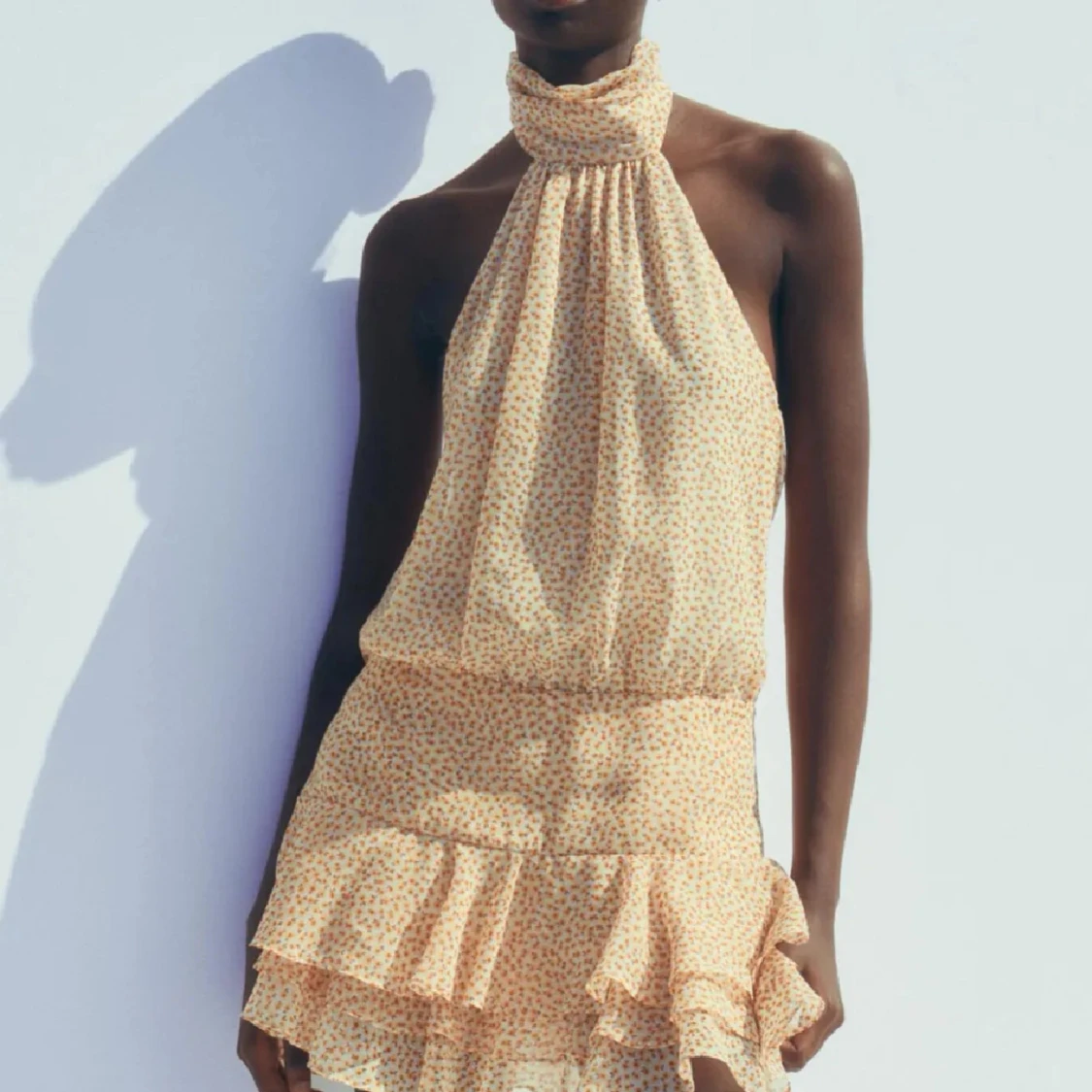 Så fin och popular klänning ifrån zara med öppen rygg💛 Aldrig använd så lappen kvar🥰