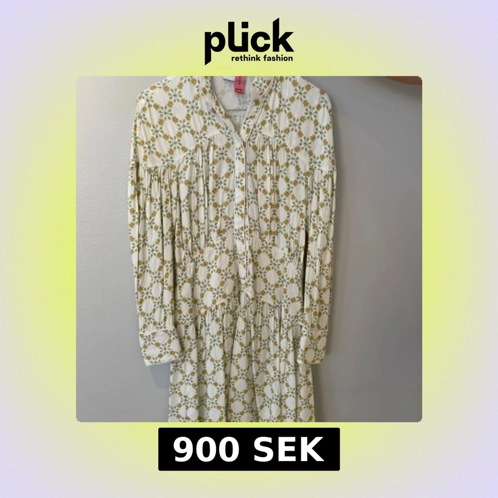 Superfin kortklänning från Sandro Paris med blommigt mönster i vitt, grönt och gult. Klänningen har långärmade ärmar, knappar framtill och en mjuk, flowy passform. Materialet är bomull och viskos, perfekt för vår och sommar. Snygg krage och fina detaljer vid axlar och midja.