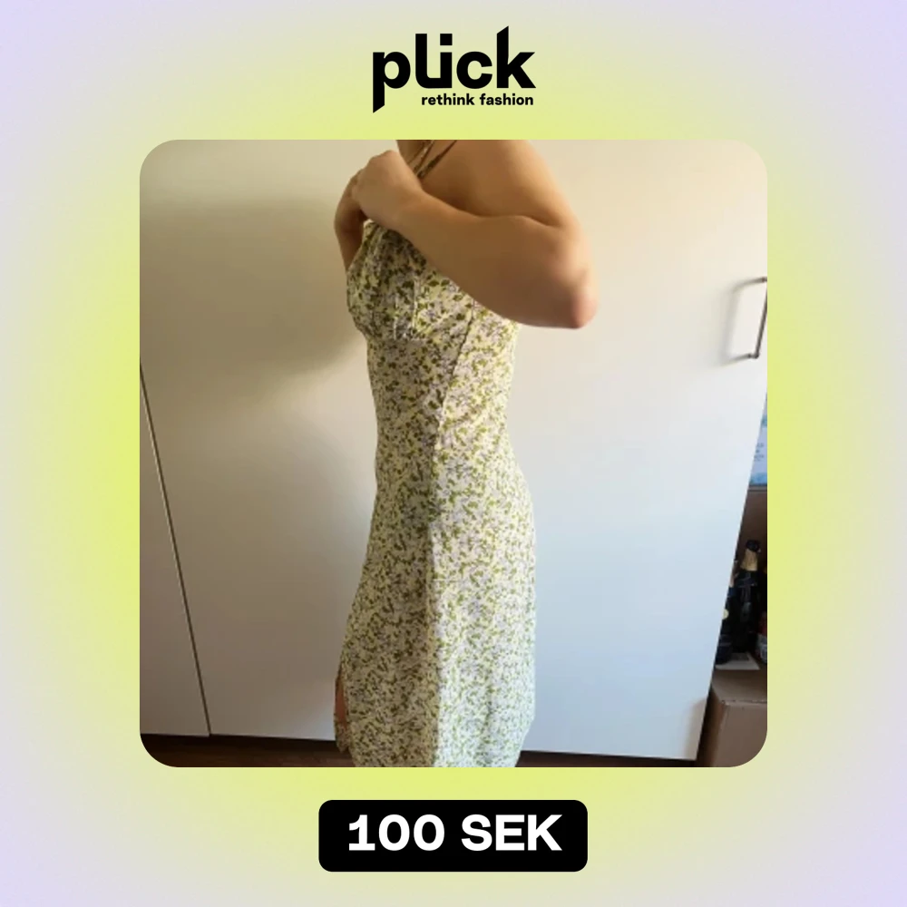 Säljer nu denna superfina långklänning som täcks av gröna blommor och fina detaljer, sitter som en smäck i midjan och är i ett tunnt luftigt material. Funkar som både S & M.