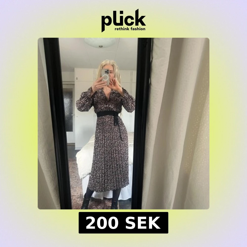 Säljer en vacker blommig långklänning. Klänningen har långa ärmar och ett fint fall. Perfekt för en stilfull look. (Eget bälte)