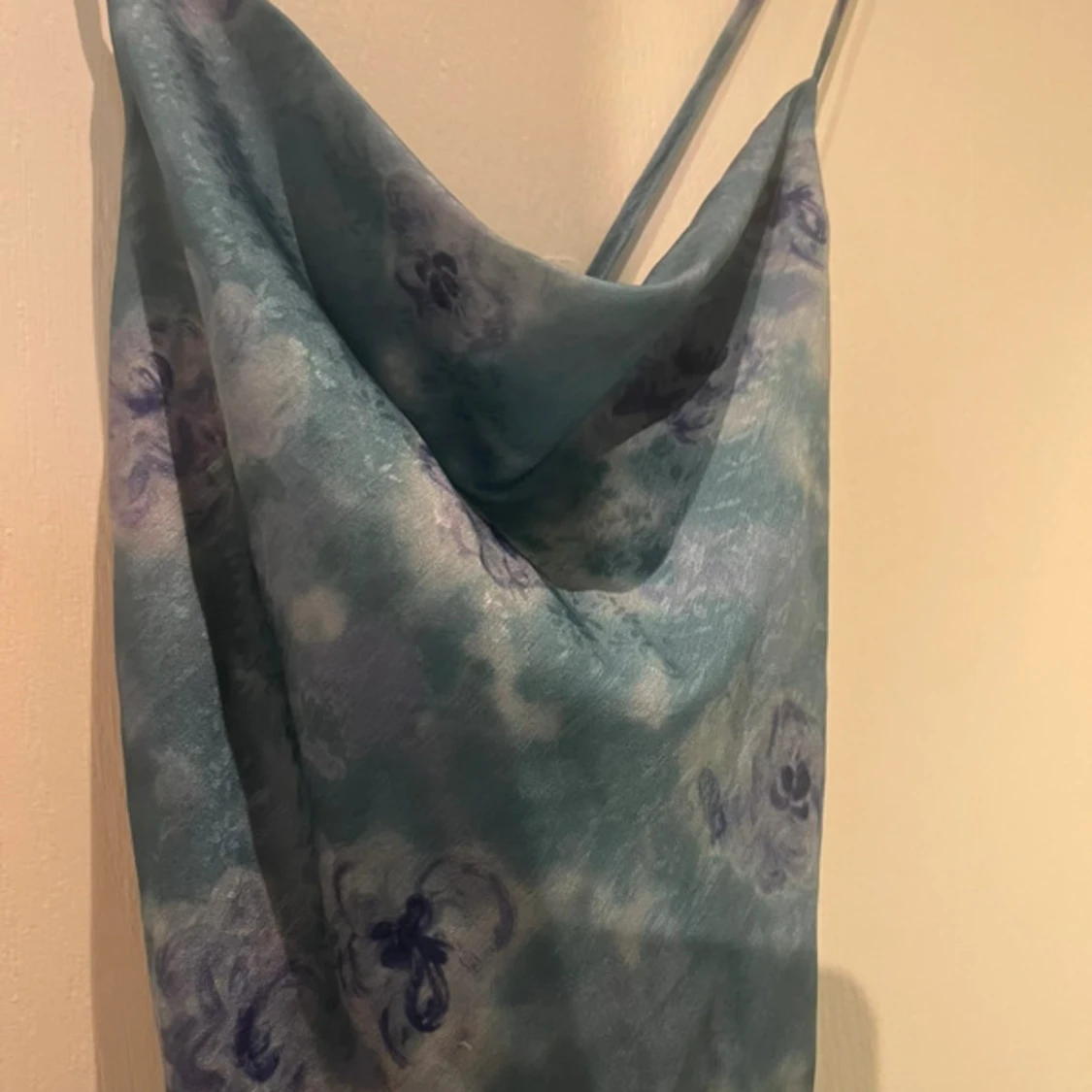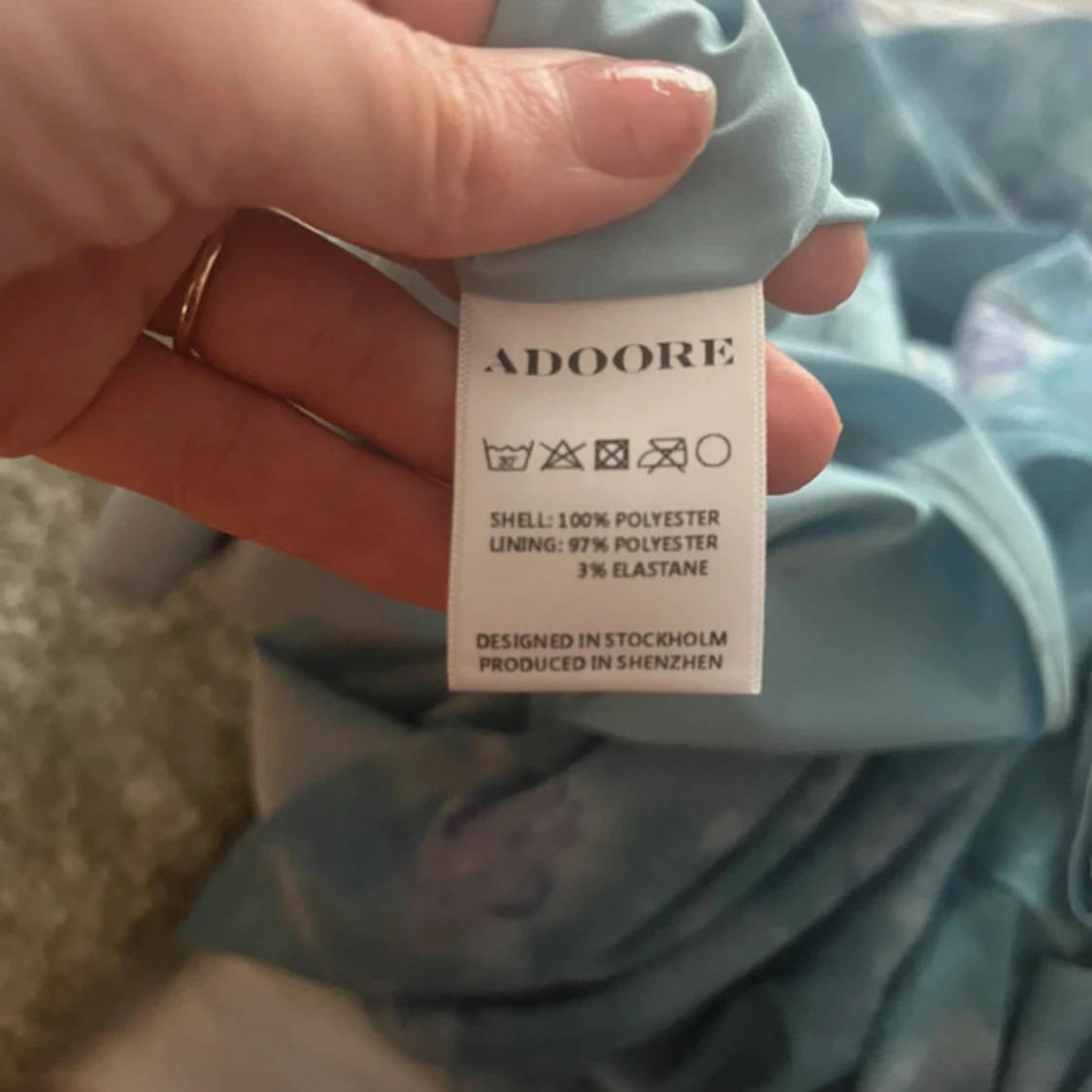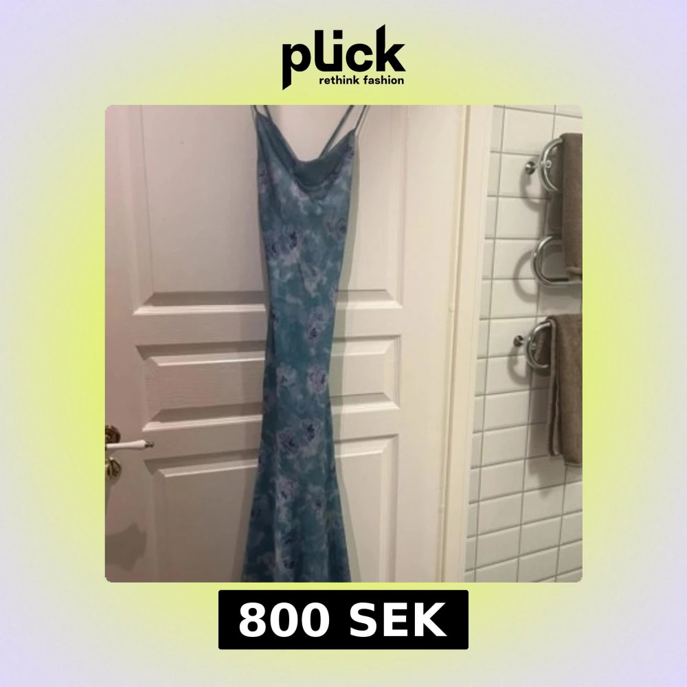 Supersnygg långklänning från Adoore i ljusblått med blommigt mönster. Klänningen har smala axelband, draperad urringning och är figurnära i modellen. Tillverkad i glansig polyester med lite stretch för en skön passform.