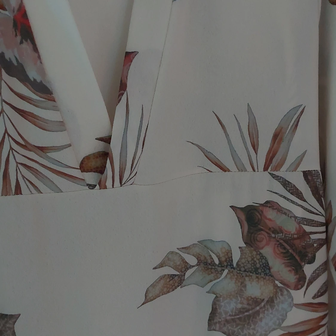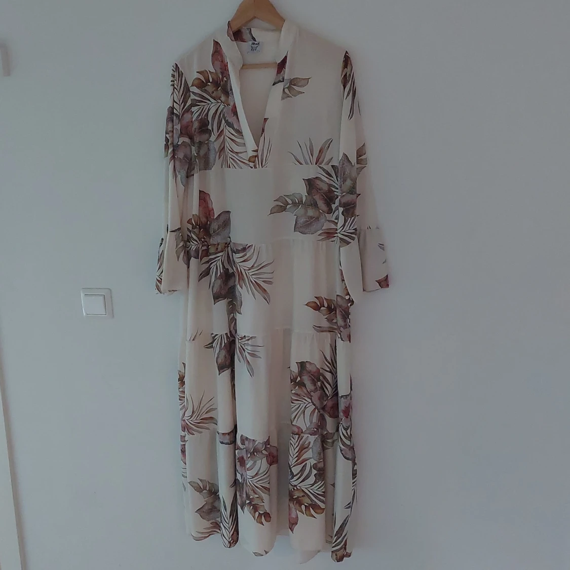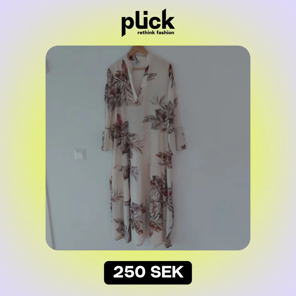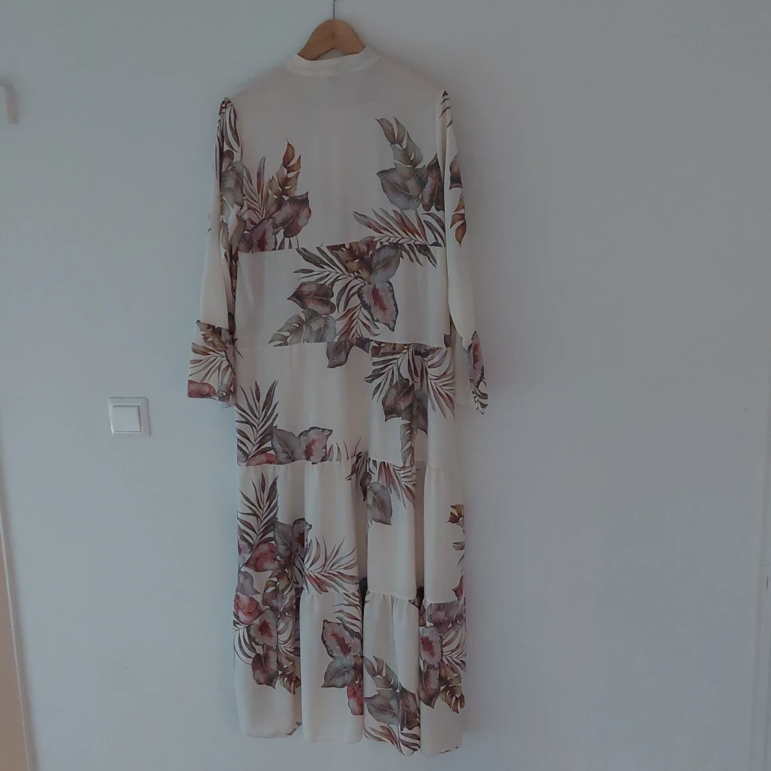 Säljer en superfin långklänning från Stajl med ett härligt blommigt mönster. Klänningen är i en ljus färg med långa ärmar och en v-ringad design. Perfekt för både sommar och vår, och den har en skön och luftig passform.