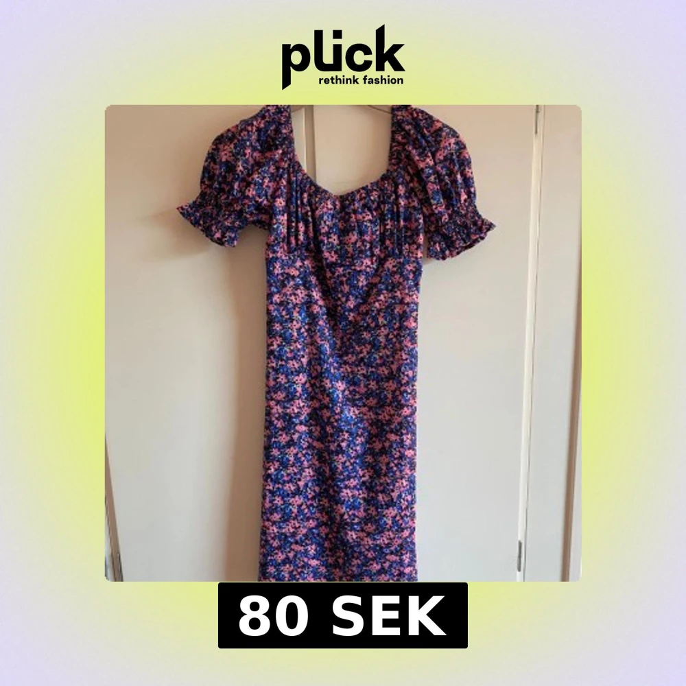 Säljer en långklänning med blå och rosa blommigt mönster. Klänningen har puffiga kortärmar och smockad rygg för extra komfort. Perfekt för dig som gillar färg och vill sticka ut med en romantisk stil.