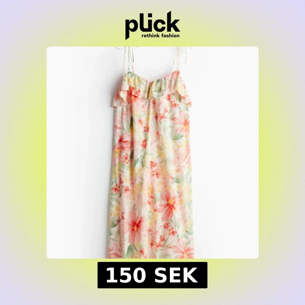 Superfin långklänning med blommigt mönster i pastelliga toner av rosa, gul och grön. Klänningen har tunna axelband som knyts och en volangdetalj upptill. Perfekt för sommarens alla tillfällen! Säljer då den inte kommit till mycket användning💕💕