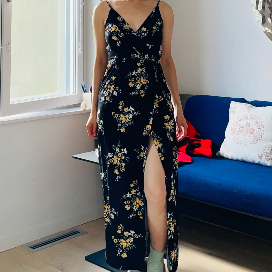 👗 Inga skador, ren och i fint skick. Lång blommig klänning med slits från H&M Divided. Justerbara axelband. Säljer eftersom storleken inte längre passar. Mått: • Längd (axelband inkl.): ca 136 cm • Bröst: ca 82 cm • Material: 100% viskos 📦 Kan hämtas i Kista, Stockholm, eller skickas. Tveka inte att höra av dig vid intresse eller frågor!