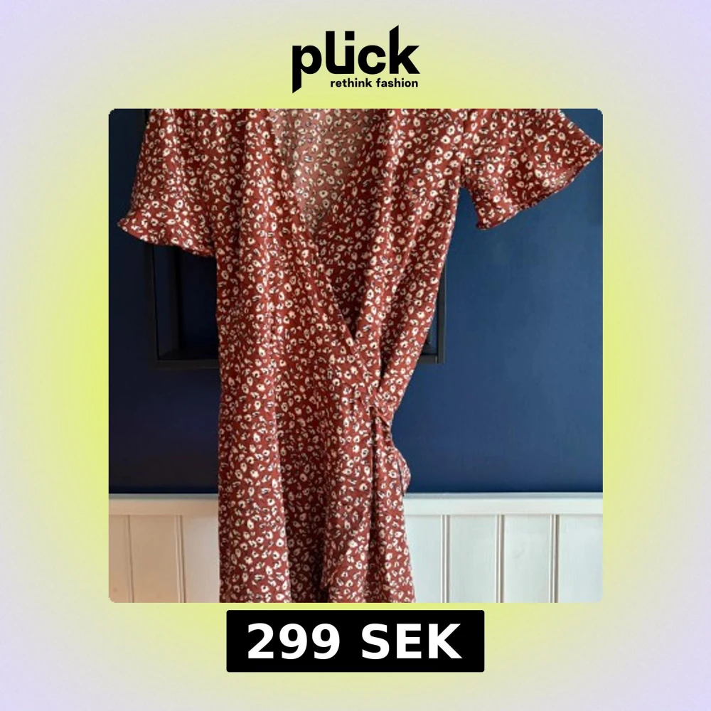 Söt kort omlottklänning från ONLY i rostbrunt med vitt blommönster. Klänningen har korta ärmar, v-ringning och knyt i sidan för en snygg passform. Perfekt för varma dagar och ger en avslappnad men trendig look.
