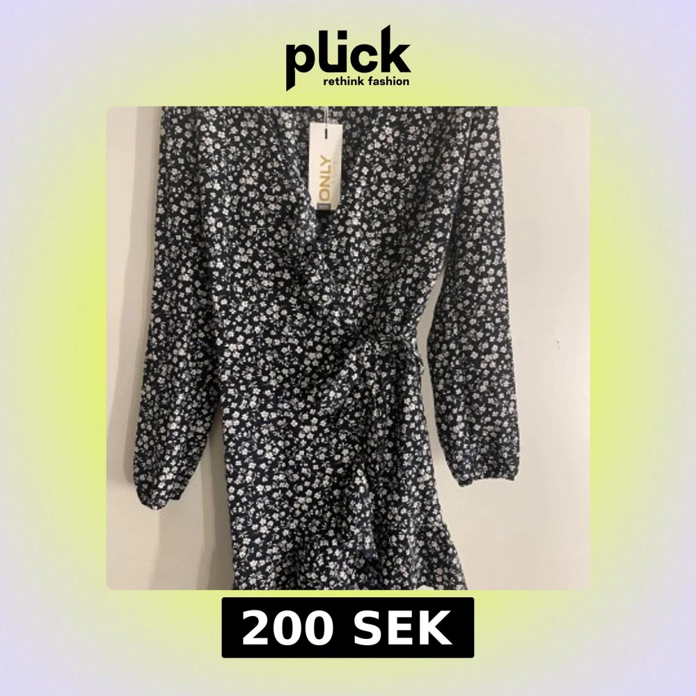 Supersöt marinblå omlottklänning från ONLY med vitt blommönster. Klänningen har lång ärm, knyt i midjan och. Perfekt för vår och sommar! 🌸