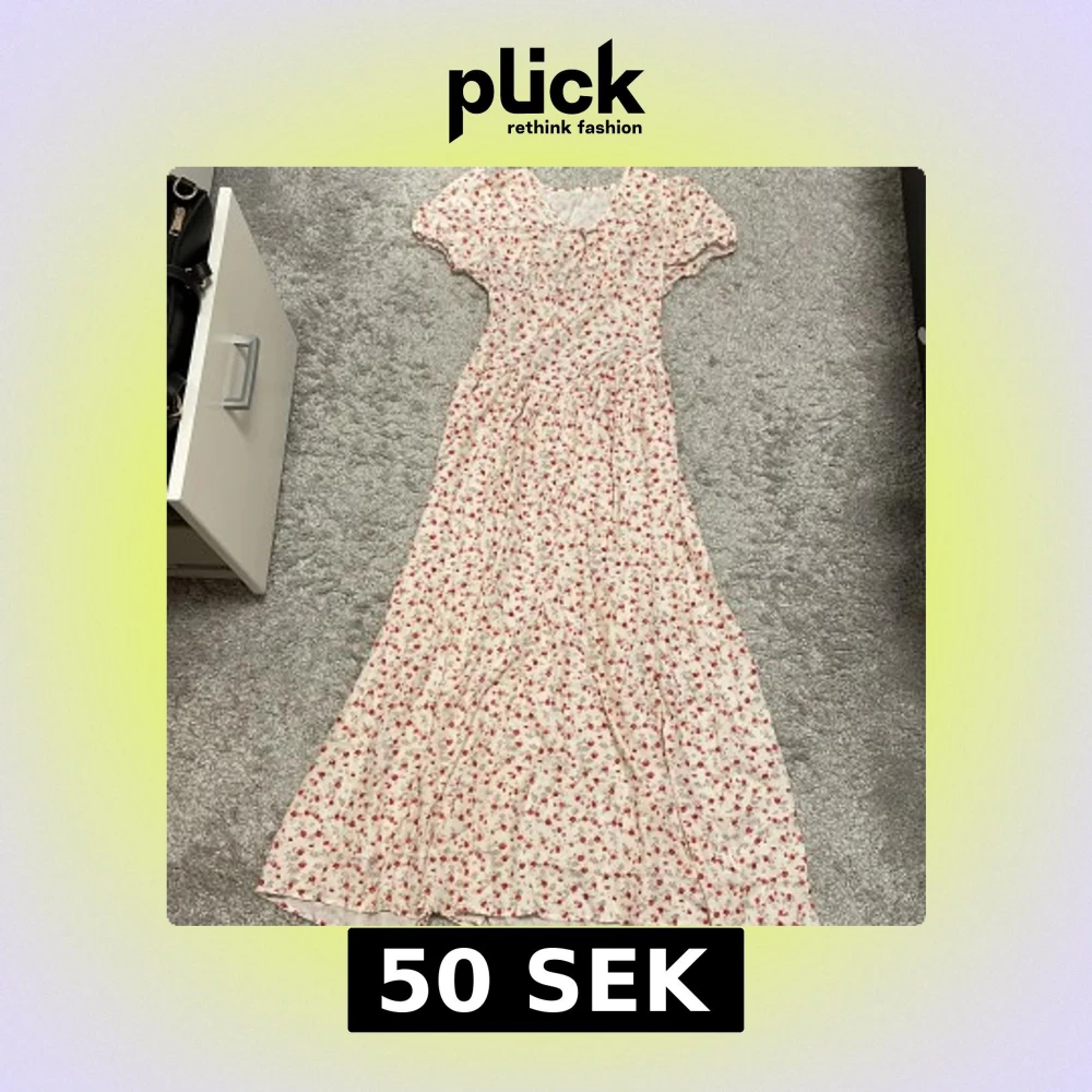 Säljer en lång, vit omlottklänning med röda och rosa blommor. Klänningen har korta puffärmar, v-ringning och volangdetaljer längs kjolen. Perfekt för sommarens alla tillfällen och har en romantisk vibe. Materialet känns lätt och luftigt.