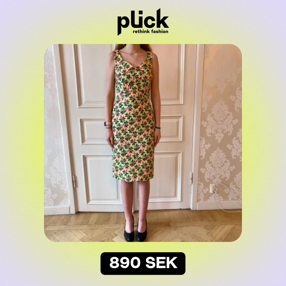 Blommig klänning, ostretchig. Storlek 40. Modellen på bilden bär samma klänning, S. 38 Modellen på bilden är 173 cm och har storlek 38 i de flesta andra kläder. Aldrig använd. Vi har lagt ner vår klänningsbutik och säljer ut. Ny pris är 2000-3000kr