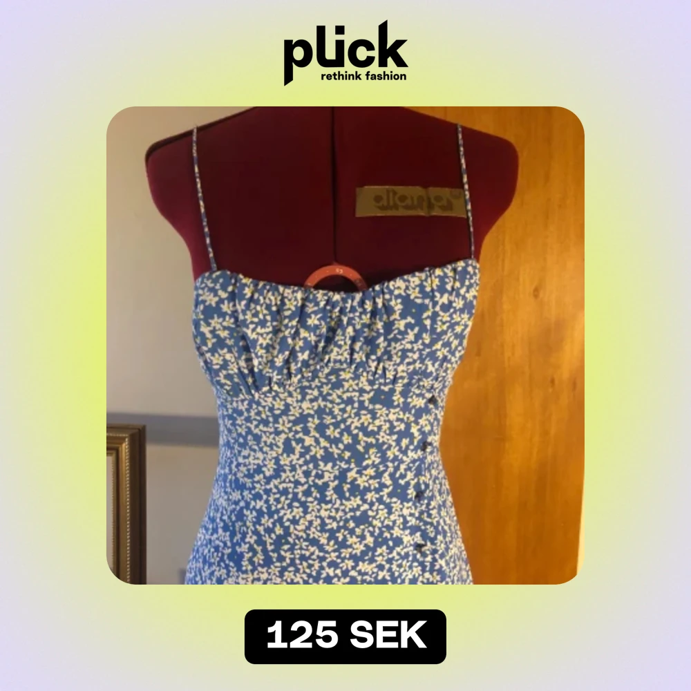 Lätt och somrig klänning som bara är använd en gång. Passformen är superfin och midjan går att justera. Den har en slits på ena benet från ungefär halvvägs ner på låret. Nypris: 399