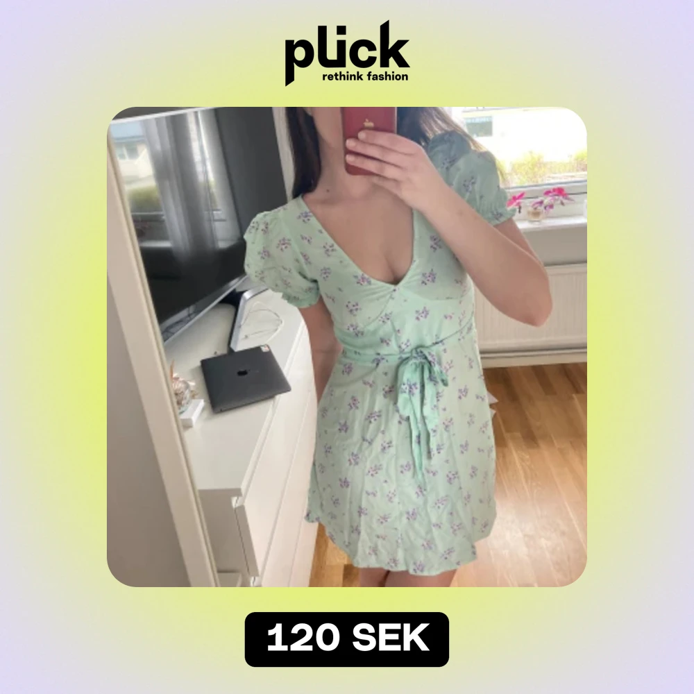 Klänning från H&M med lila blommor och ”band”. Banden går att knyta antingen fram eller bak🌸 Använd några gånger när den var köpt men inte riktigt min stil längre