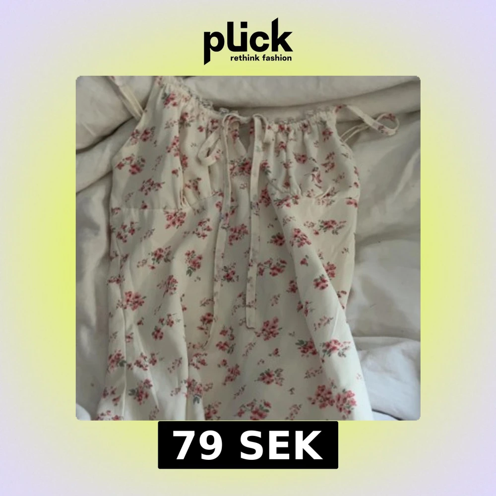 Supersöt kort klänning från SHEIN Gomorn i ljusbeige med små rosa blommor. Axelbandslös modell med knytband upptill och avslappnad passform. Perfekt för varma dagar och har en romantisk vibe.
