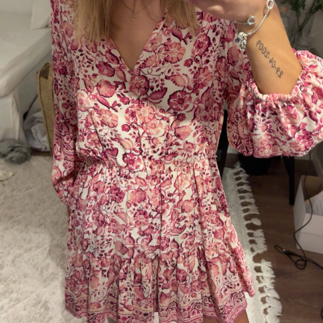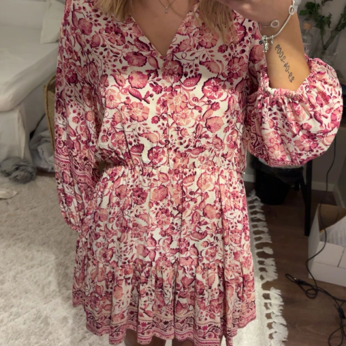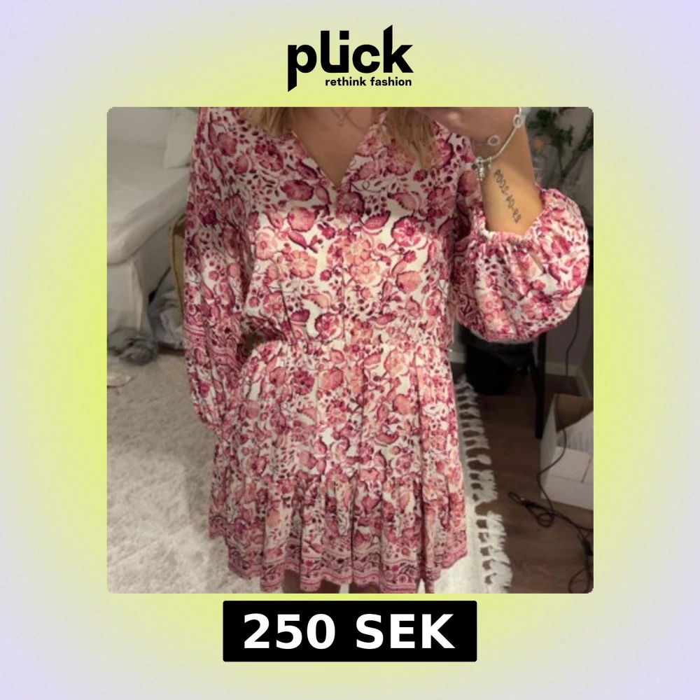 Säljer en söt blommig klänning i rosa från zara. Helt ny med prislappen kvar! Nypris 400. Storlek M men passar även S
