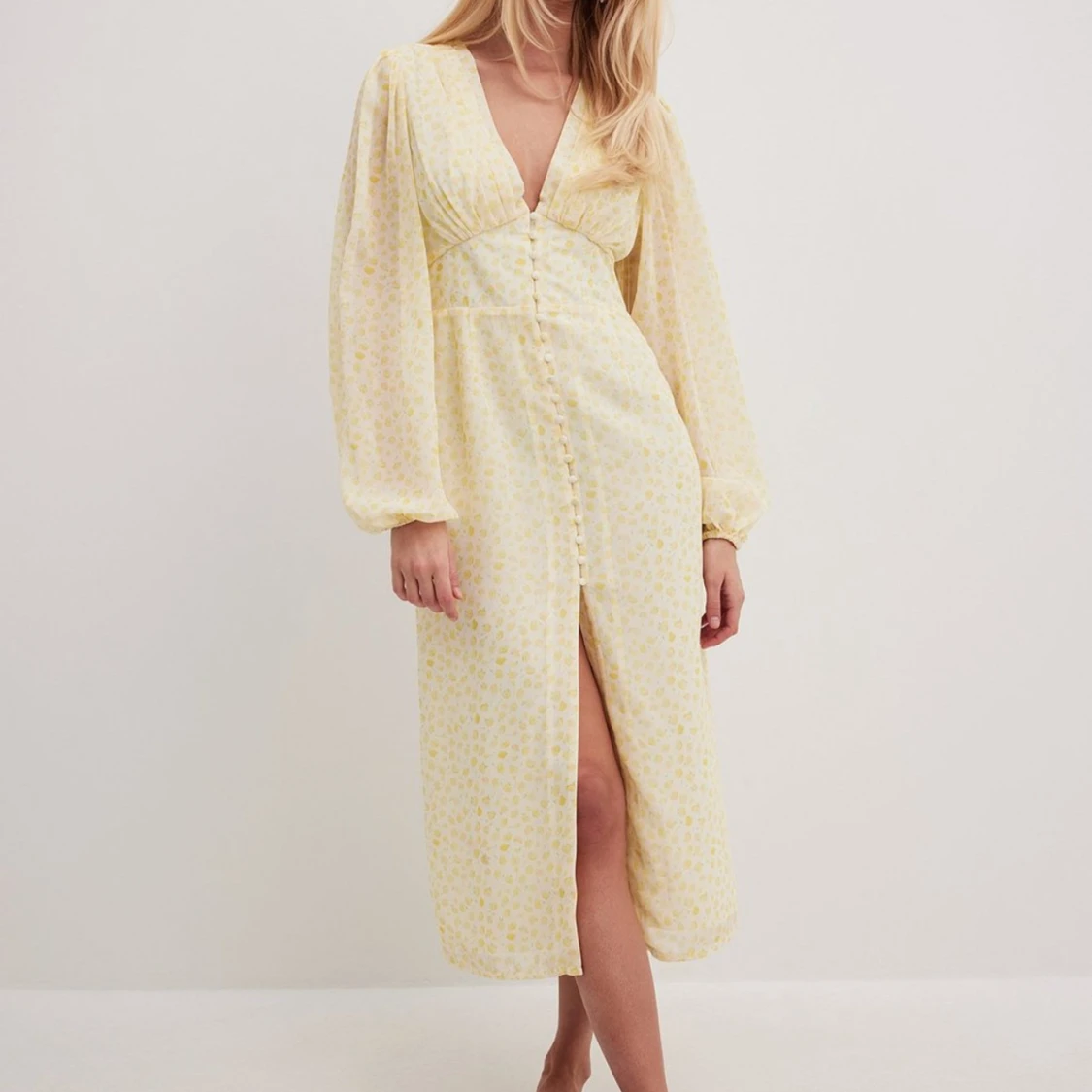 Blommig midiklänning från NA-KD. Strl 32. Använd fårtal gånger🌼💛Ordinarie pris 899kr men säljer för 400kr