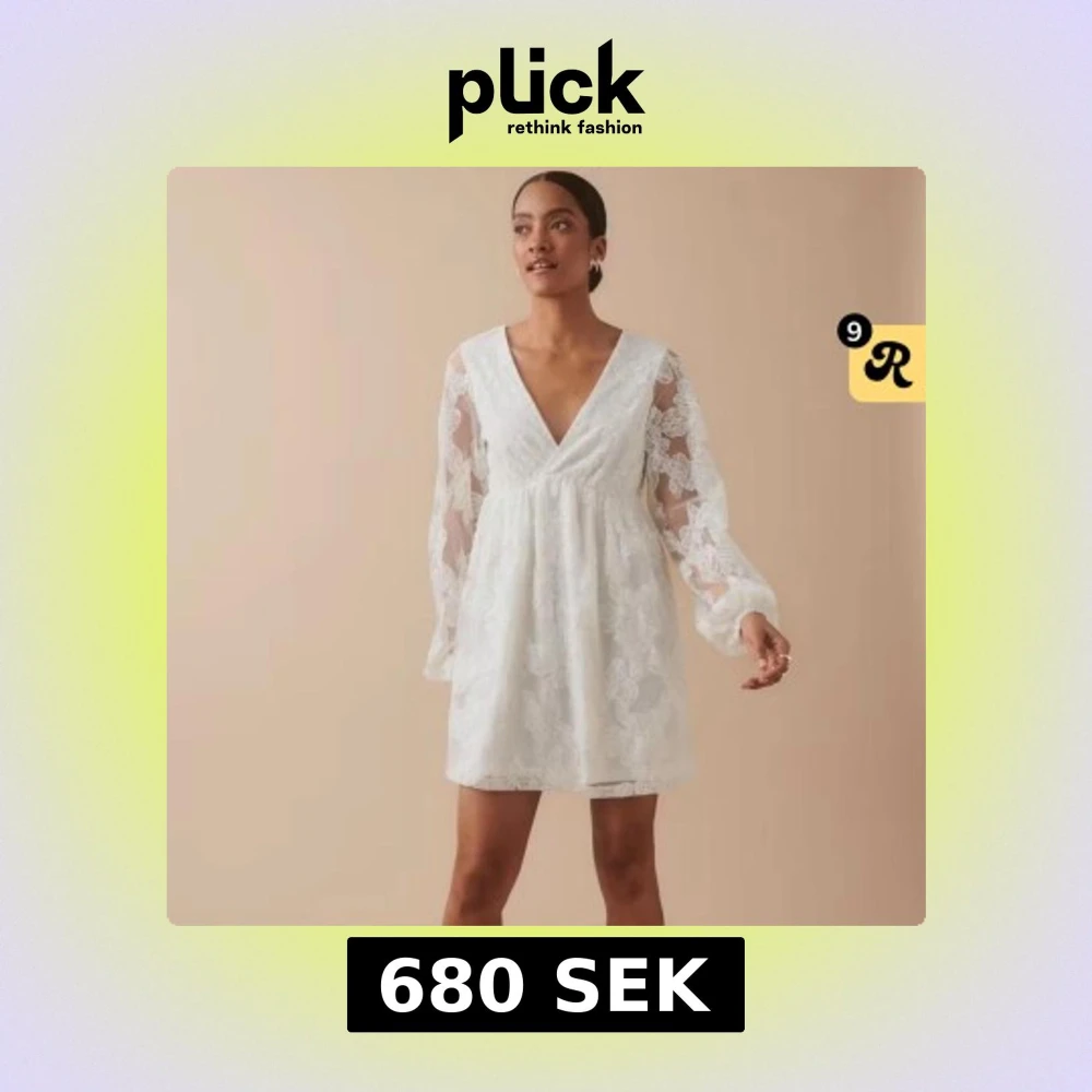 Superfin vit kortklänning från Gina Tricot med v-ringning, långa transparenta ärmar och broderade blommor i spets. Klänningen har omlott framtill, samt knytband i nacken. Inga defekter och ändas använd 1 gång🫶🏻 Läs gärna bio💗 ord pris 800kr🩷 priset är diskuterbart!