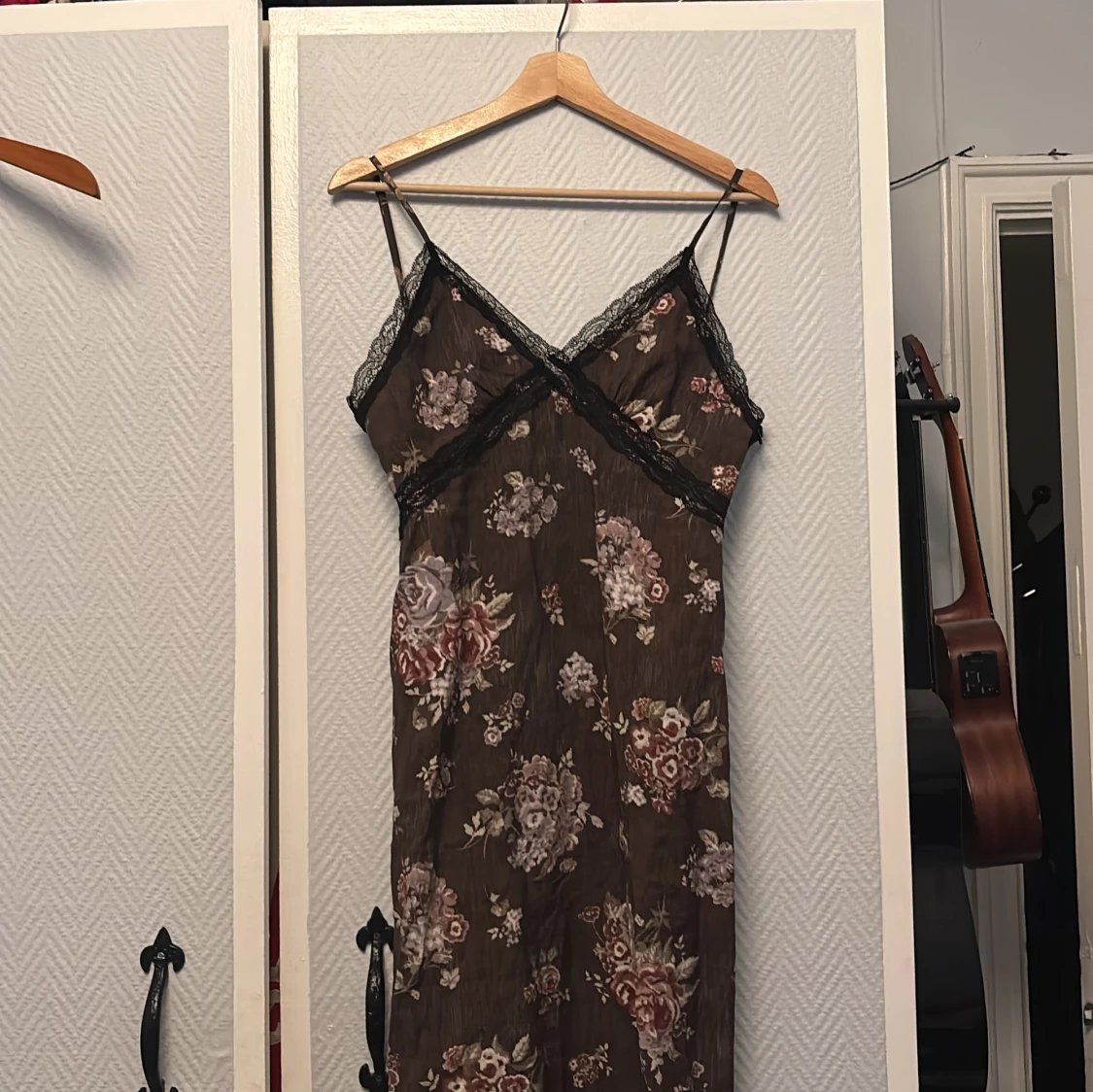 Jätte fin brun klänning med blommor från hm. Midi/maxi klänning