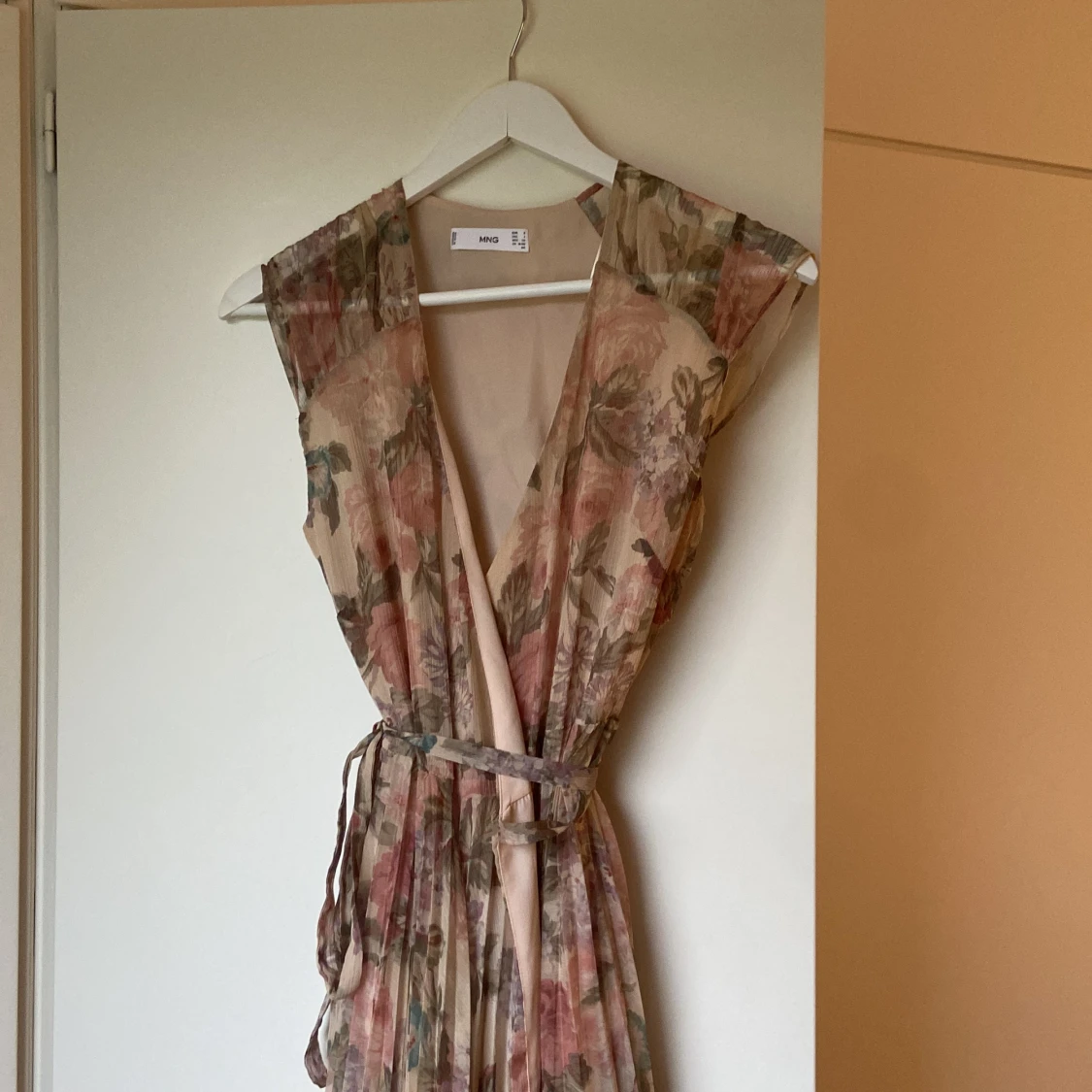 Lång klänning från Mango, rosa men blommor. Köparen står för eventuell frakt. Endast använd en gång.