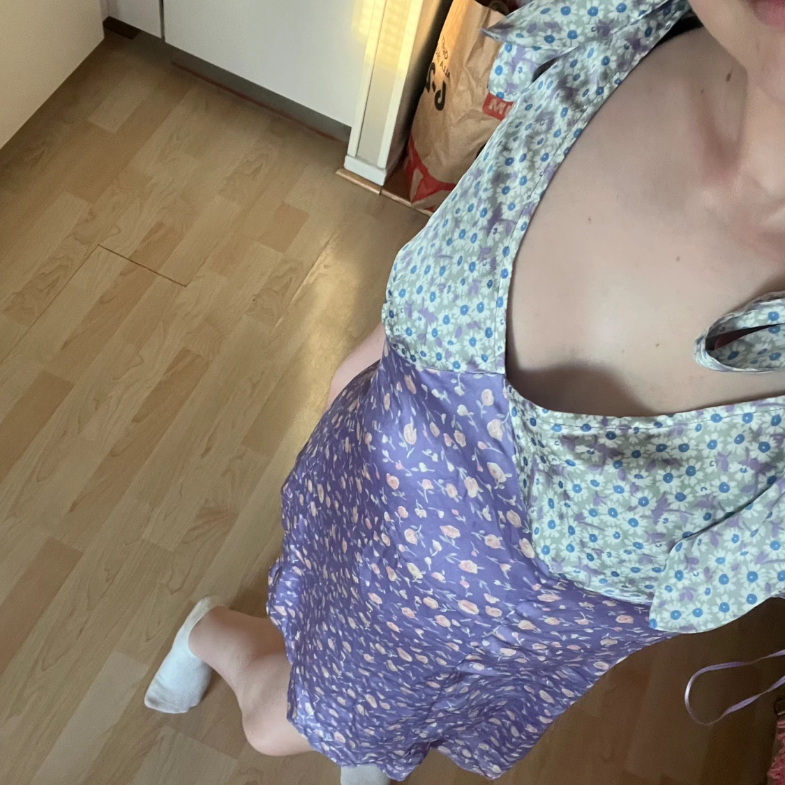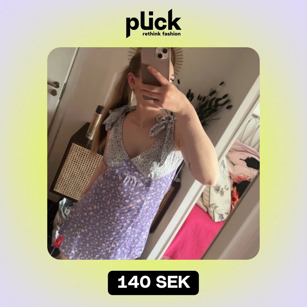 SÅ fin sommarklänning!! Glansigt material, blommig, du knyter banden själv, fin och smickrande passform vid bysten. Köpt för ca 2 år sedan. Lite för kort för min smak därav aldrig använd & har lapp kvar🩷