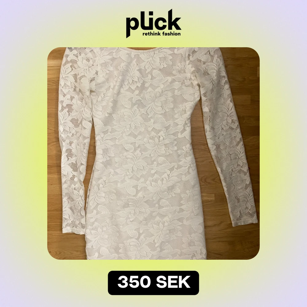 Säljer en superfin vit spetsklänning i tight passform. Klänningen är kort och har långa ärmar, perfekt för student mottagning. Den har ett vackert blommigt mönster som ger en romantisk känsla. Passar perfekt för både vardag och festliga tillfällen! Säljer då den e lite för tajt för mig❤️
