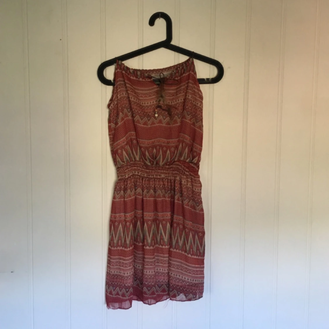 Bohemsk klänning i fint mönster :) lite trådar längst ner som luckrats upp men går att fixa med lite tråd o nål! Aldrig använd. Skickar om köparen betalar frakt.