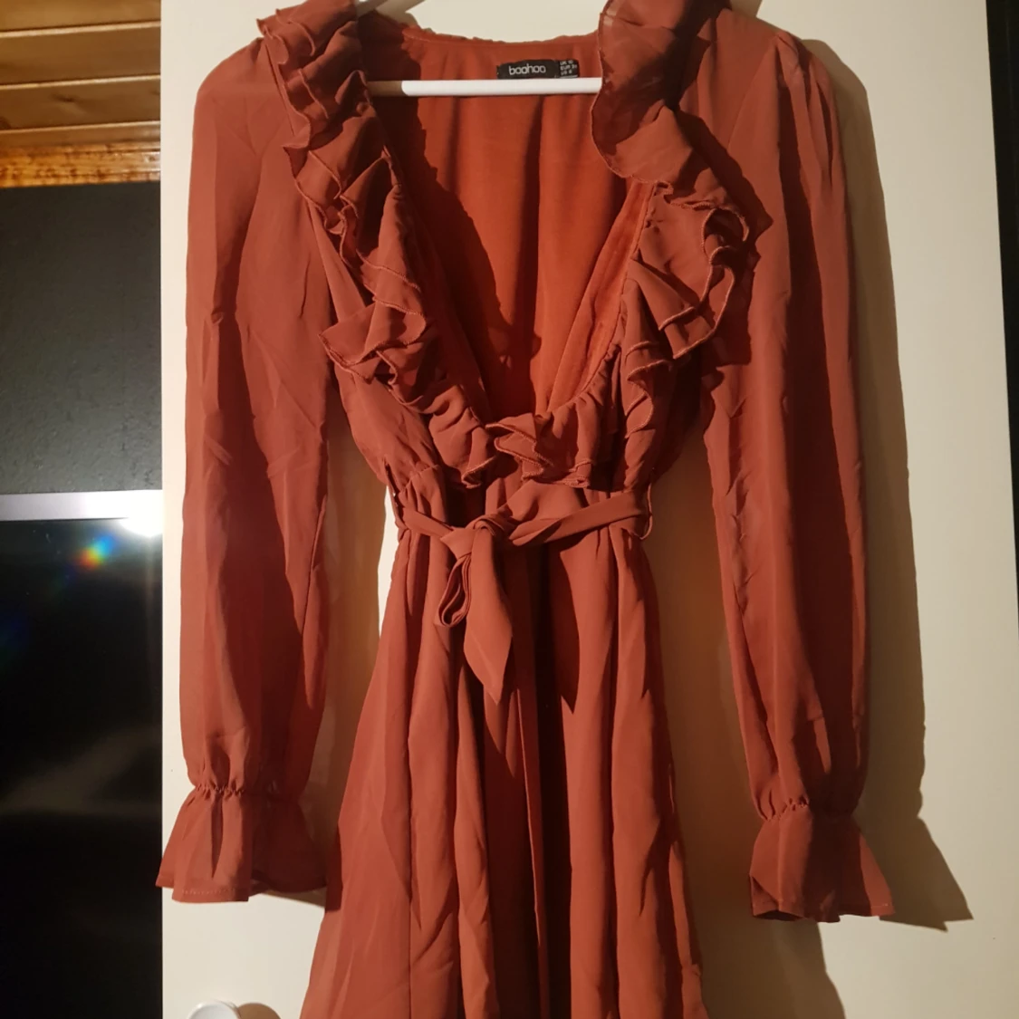 Bohoo klänning med låg urringning. Använd en gång. Strl 38.Köpare står för frakt