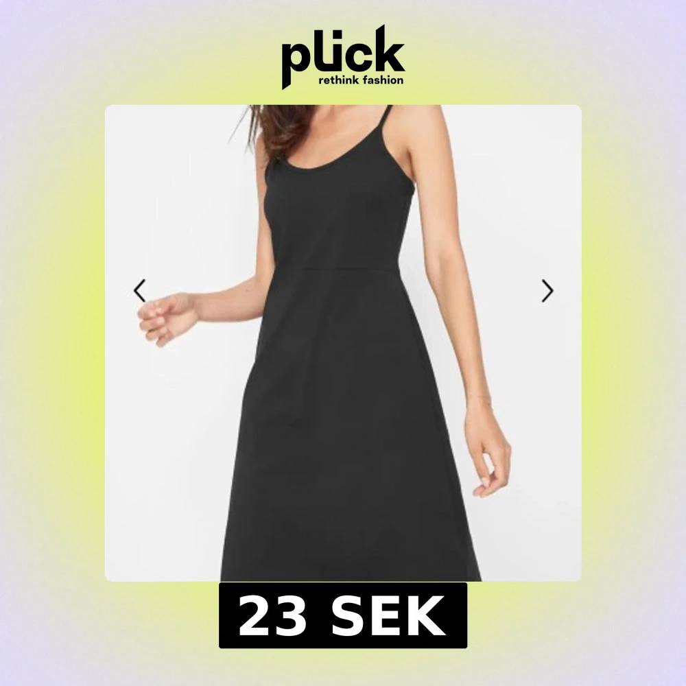 En liknande!! En stilren svart klänning med smala axelband och enkel, rak passform. Klänningen är ärmlös och har en lätt utställd kjol som ger en klassisk siluett. Perfekt för dig som gillar minimalistisk stil.
