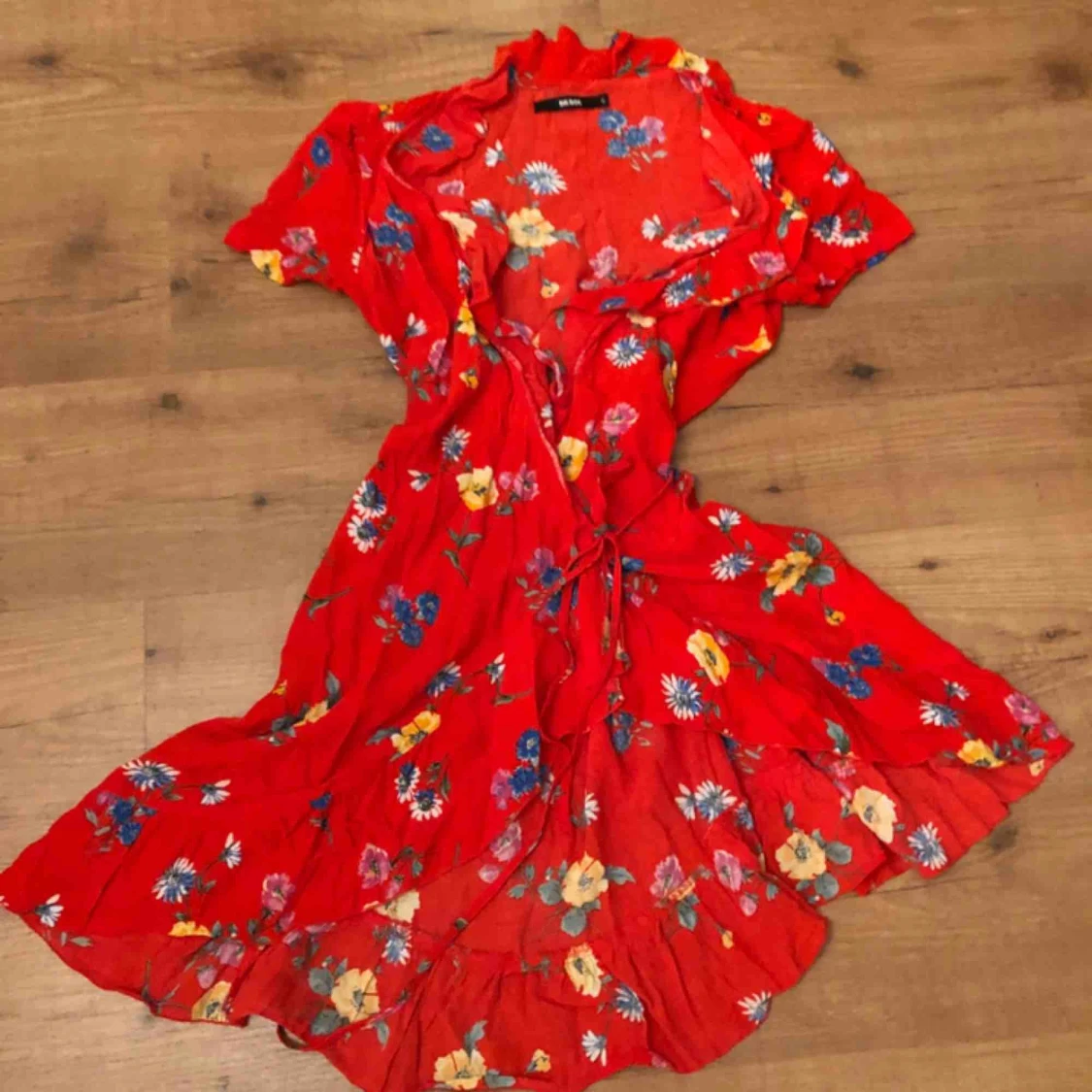 Fin röd blommig sommarklänning från BikBok som använts två gånger!