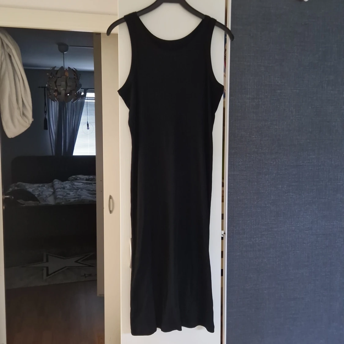 Svart, ribbad halvlång klänning. Aldrig använd. Från lager 157.
