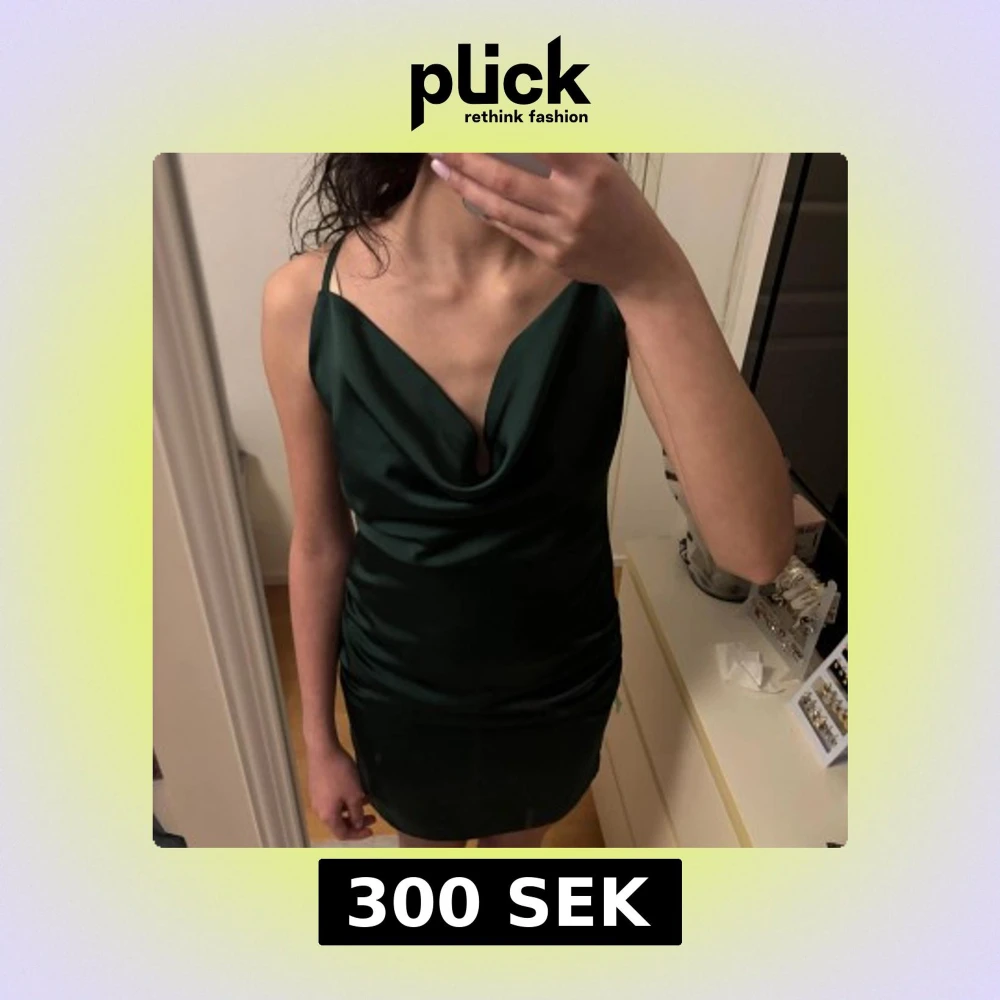 Snygg mörkgrön klänning med smala axelband och draperad framsida. Banden går som ett kors på ryggen. Klänningen är inte använd men saknar prislapp.