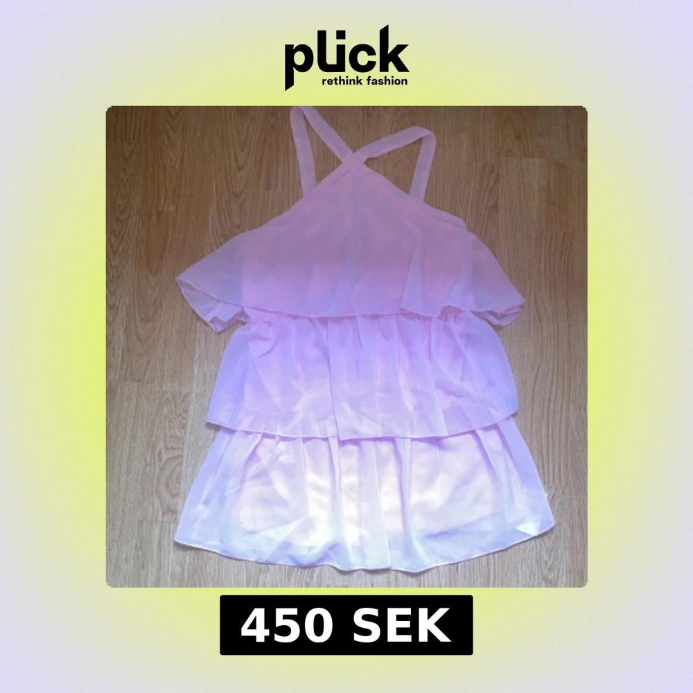 Klänningen är aldrig använd! Den är en storlek 40 men är liten i storleken skulle säga att det motsvarar en storlek 38. Den är ganska kort på mig och slutar en bit nedanför min rumpa och jag är 168,5 cm. Väldigt fin att ha på en student fest eller i midsommar. Det är inget fel på den. Jag säljer den eftersom gilla inte hur den satt på min kroppsform! Original priset var 500kr