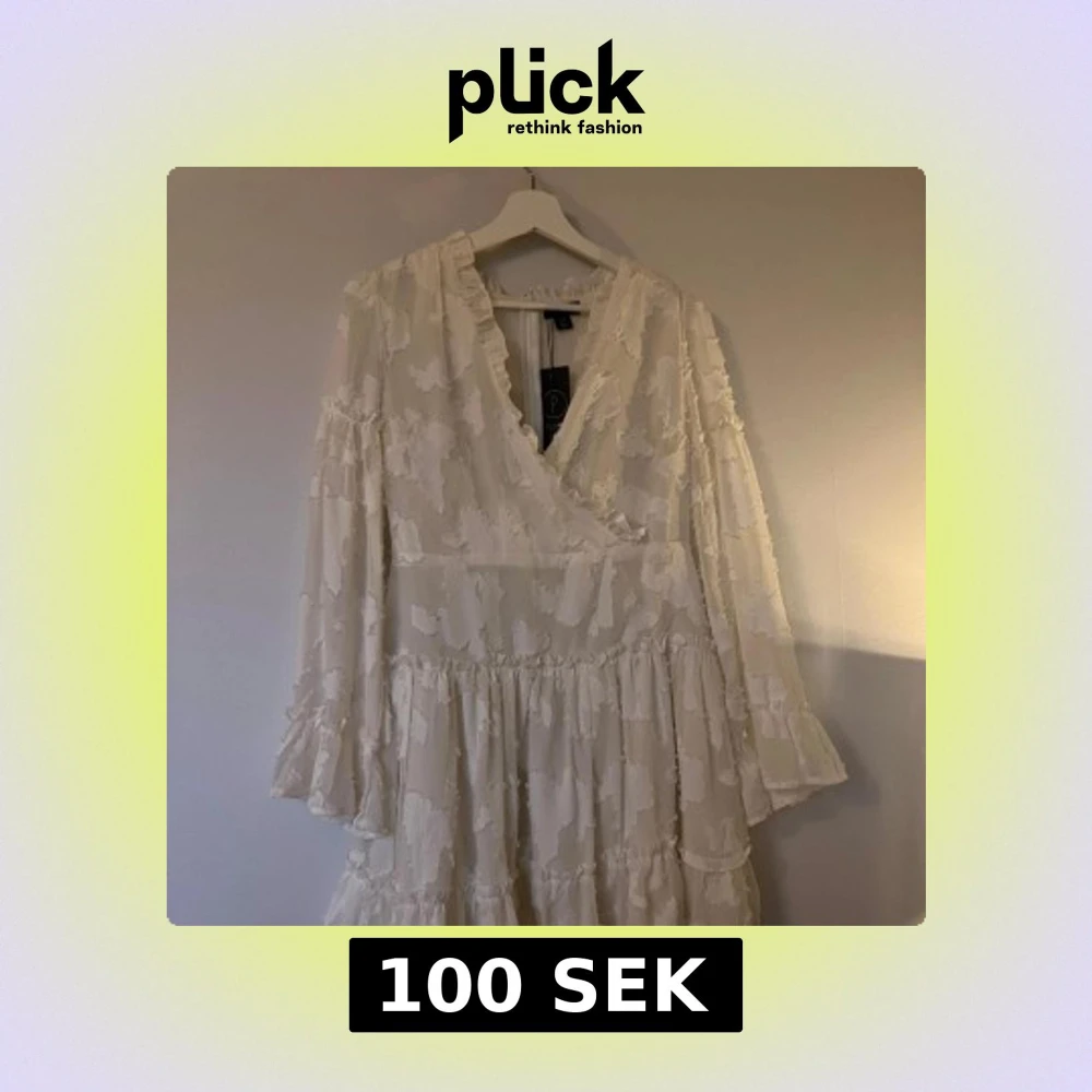 Superfin vit omlottklänning från Boohoo med långärmade volangärmar och strukturmönster i tyget. Köpt som studentklänning men blev istället oanvänd, lapp finns kvar. 🤍