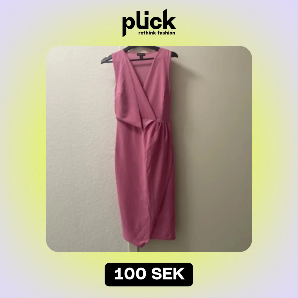 Säljer en snygg rosa klänning från Boohoo i storlek M. Klänningen är ärmlös med en omlott-design framtill och en v-ringad hals. Perfekt för festliga tillfällen!
