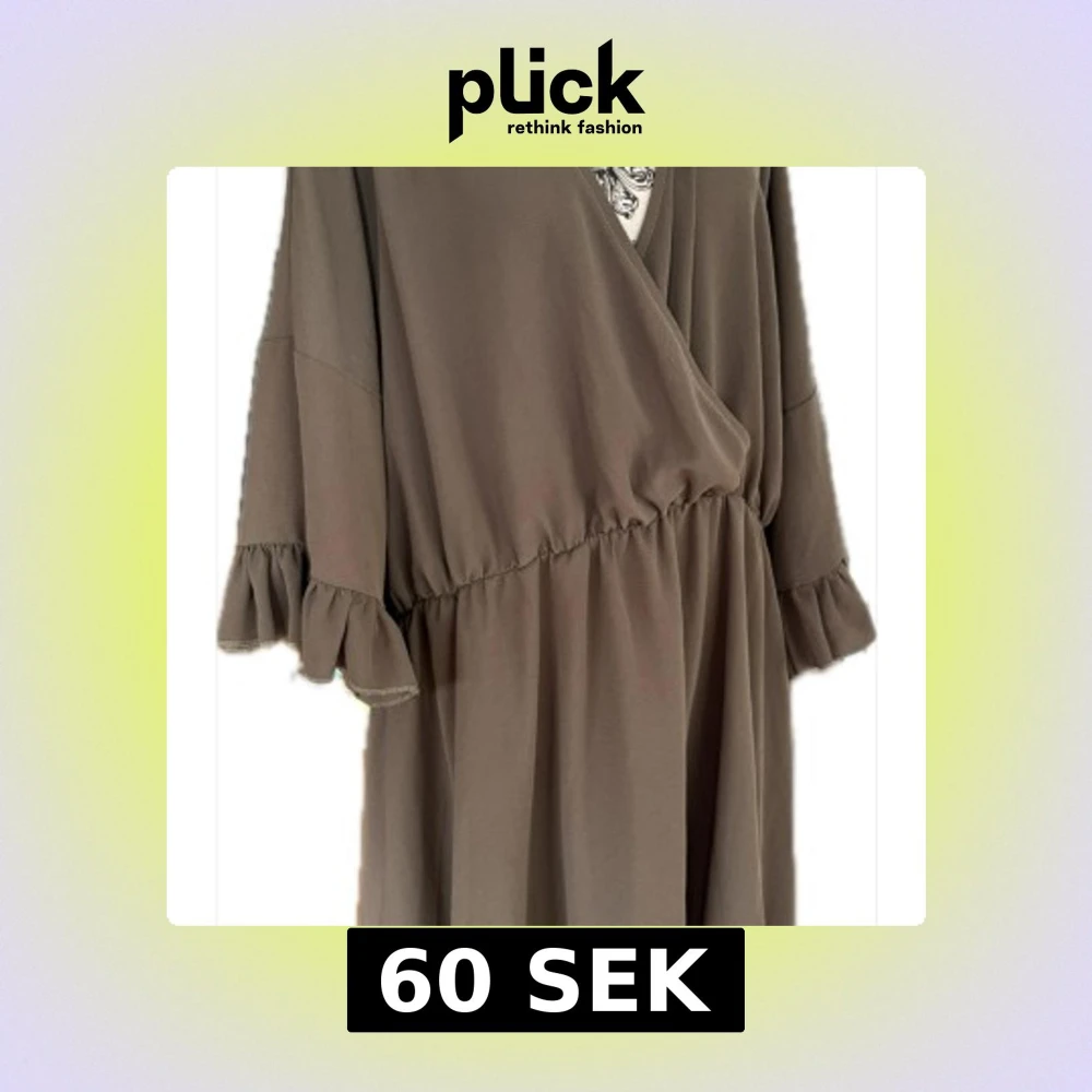 Säljer en brun omlottklänning från Boohoo med volangdetaljer på de halvlånga ärmarna och markerad midja. Klänningen har v-ringad hals och är tillverkad i ett mjukt, lätt polyestertyg som faller snyggt. Perfekt för dig som gillar avslappnad men chic stil.