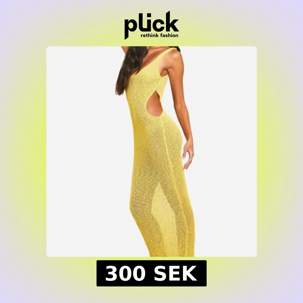 Snygg gul klänning från Boohoo med en öppen rygg och tight passform. Klänningen har en lång längd och är i strechigt material. Med prislapp.