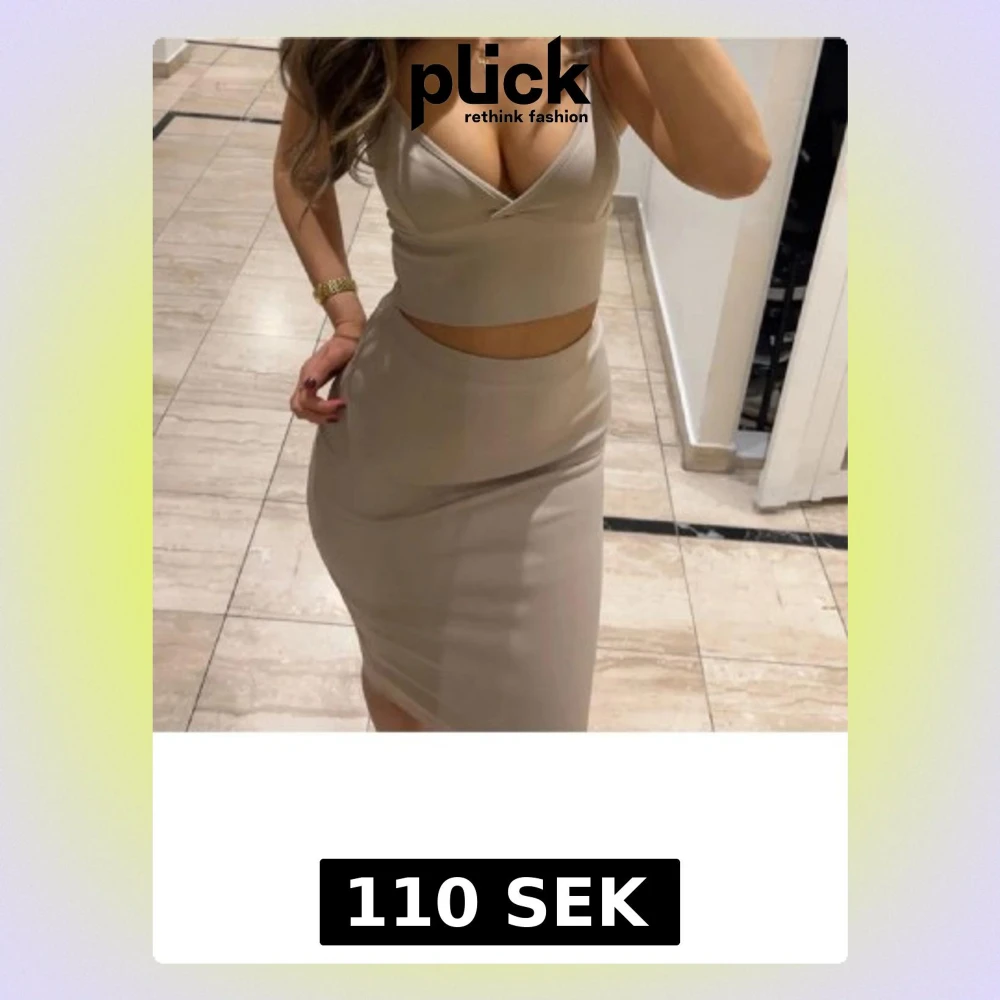 Säljer en beige långkjol och top med tight passform och hög midja. Kjolen är figurnära och har en stilren, enkel design utan mönster. Toppen är urringad. Tillverkad i ett stretchigt material som sitter snyggt och bekvämt. Perfekt för dig som gillar en clean och modern look. Endast använd en gång