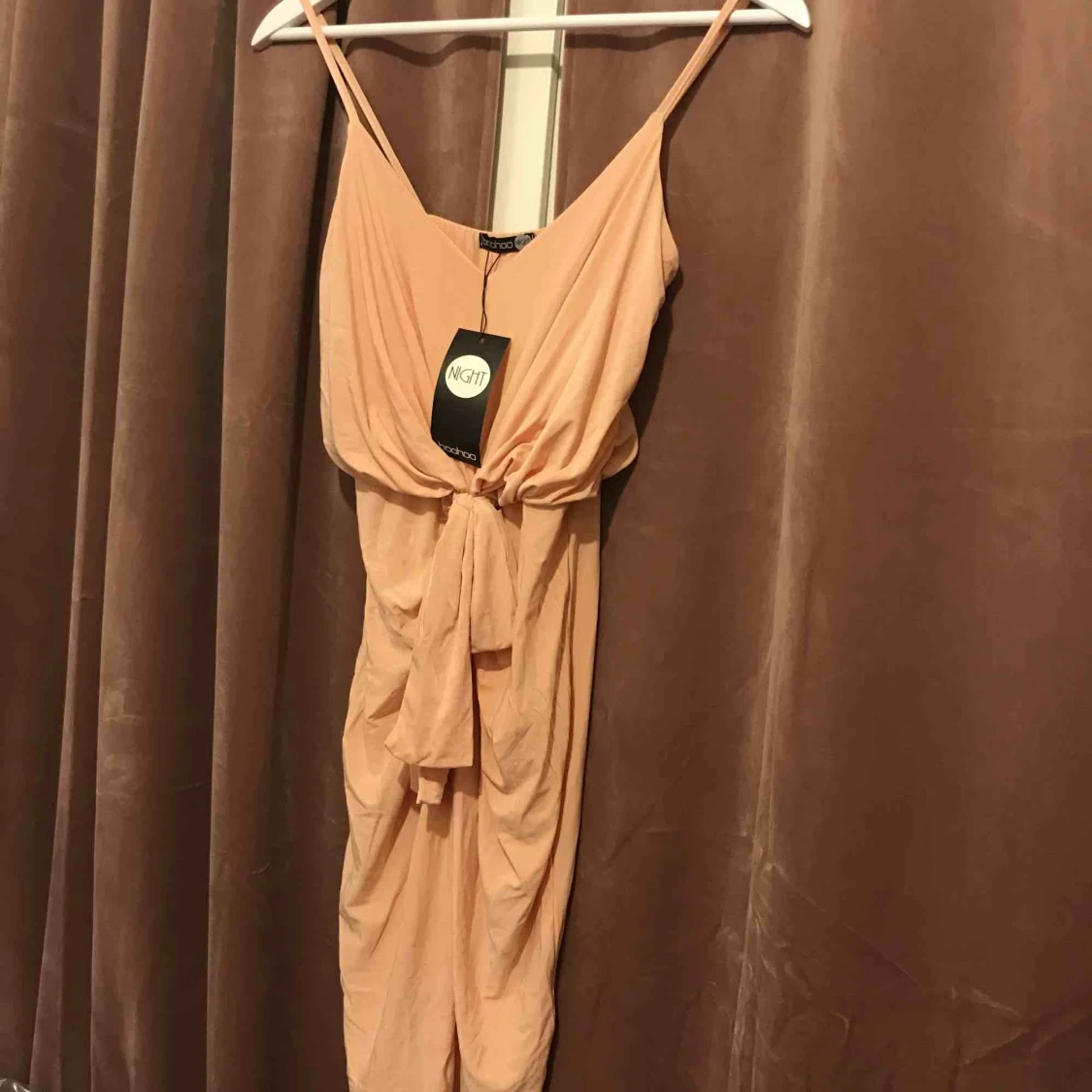 Jättefin klänning som är helt oanvänd med prislappen kvar! puderrosa i färgen och materialet är stretchigt och lite glansigt. Sitter perfekt då klänningen har knytning i midjan, och sedan faller snyggt längs med kroppen🙌🏻✨