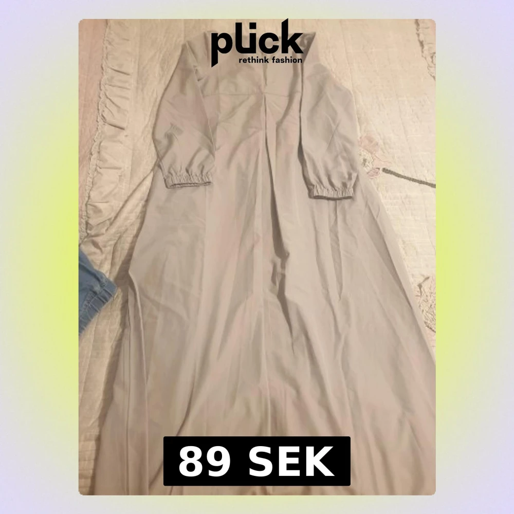 Säljer en stilren grå långklänning i storlek S. Klänningen har rund halsringning, långärmade ärmar med resår vid mudden och en diskret dragkedja framtill. Materialet känns lätt och mjukt, perfekt för dig som gillar enkel och clean stil.