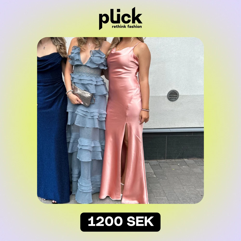 Säljer min balklänning, den är uppsydd så kan skicka exakta mått om det önskas🩷 endast använt en gång!!
