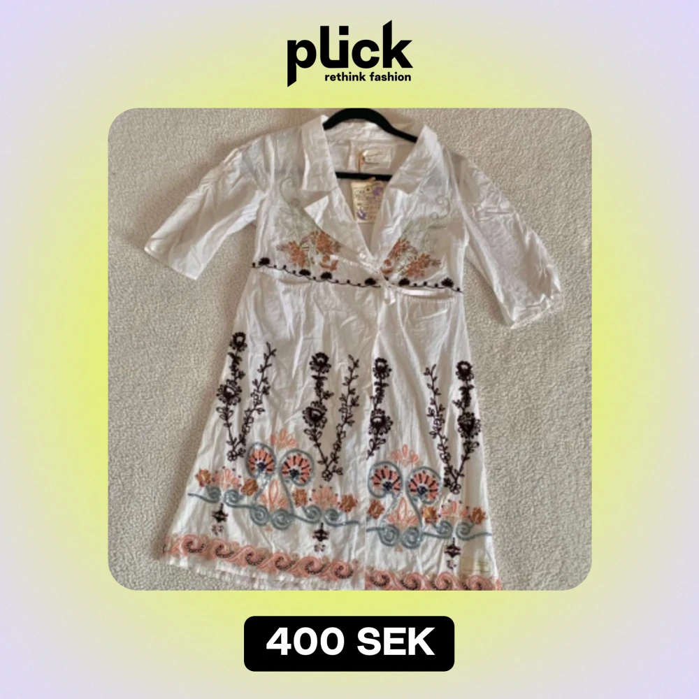 Otroligt vacker omlottklänning från Odd Molly med två små fickor och massor med fina mönster i pärlor och broderier. Ny med tags kvar, har en mindre obehandlad sminkfläck i nacken men inget som stör eller är märkbart. Storlek 1, motsvarar S.