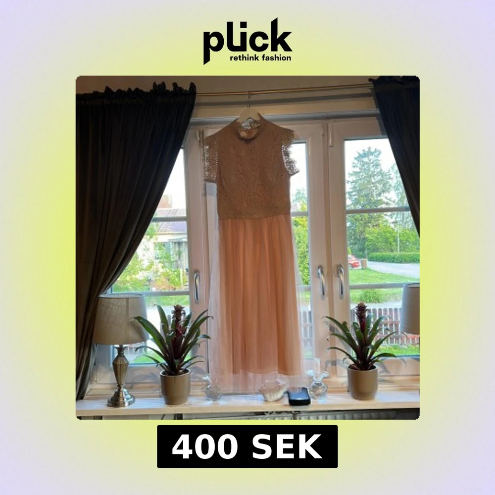 Säljer en elegant långklänning i rosafärgad med överdel i spets och ärmlös design. Kjolen är i mjuk tyll som ger ett luftigt intryck. Perfekt för bal eller fest. Hög halsringning och fina spetsdetaljer på axlarna.