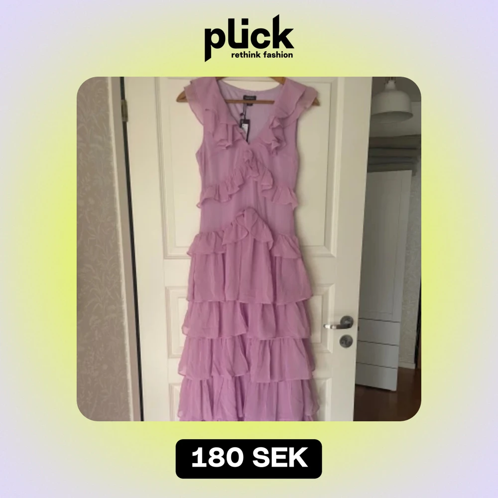 Balklänning/långklänning i rosa, storlek 38, från Boohoo. Nyskick med prislappen fortfarande på.